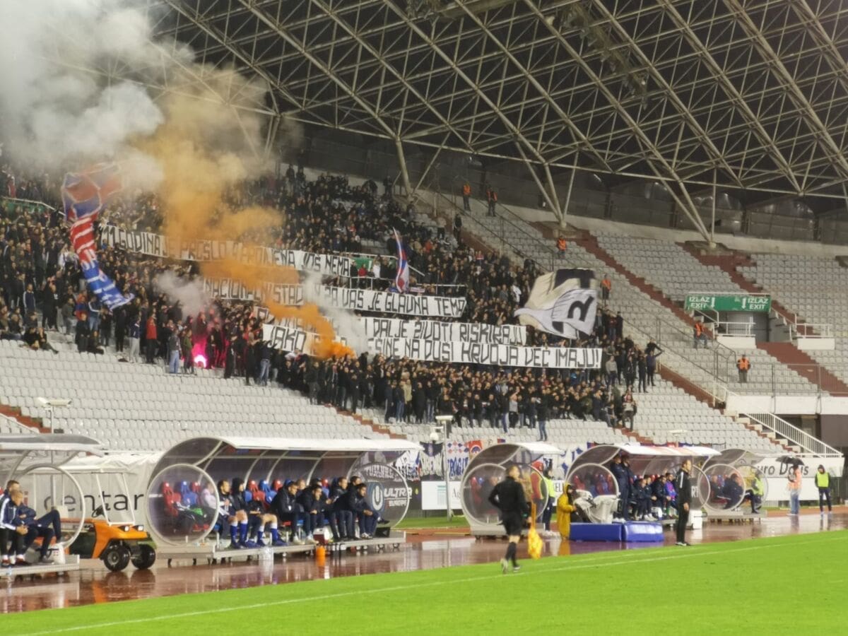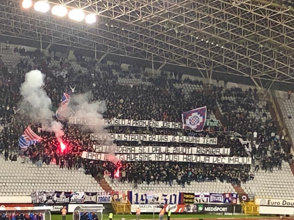 iako iste glašveine na duši Hrvoja već imaju!" - sadržaj je transparenta koji je Torcida razvila u 60. minuti.