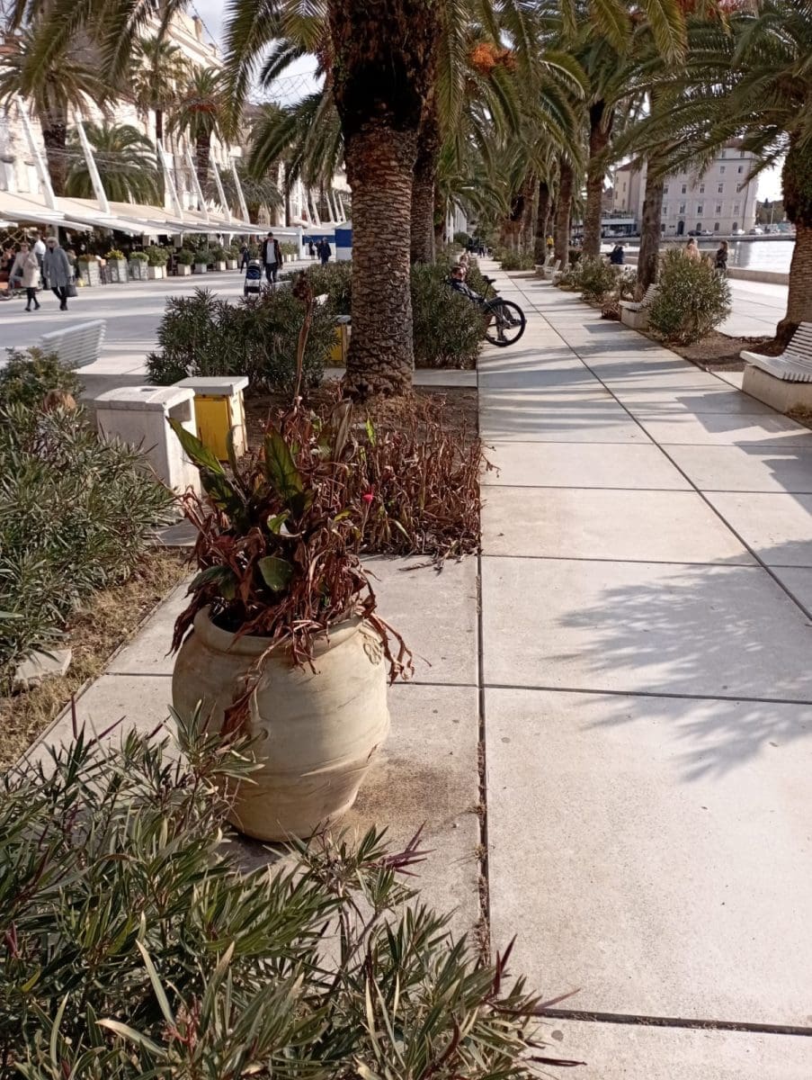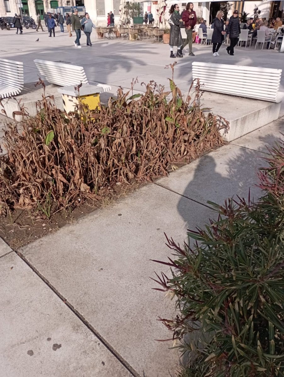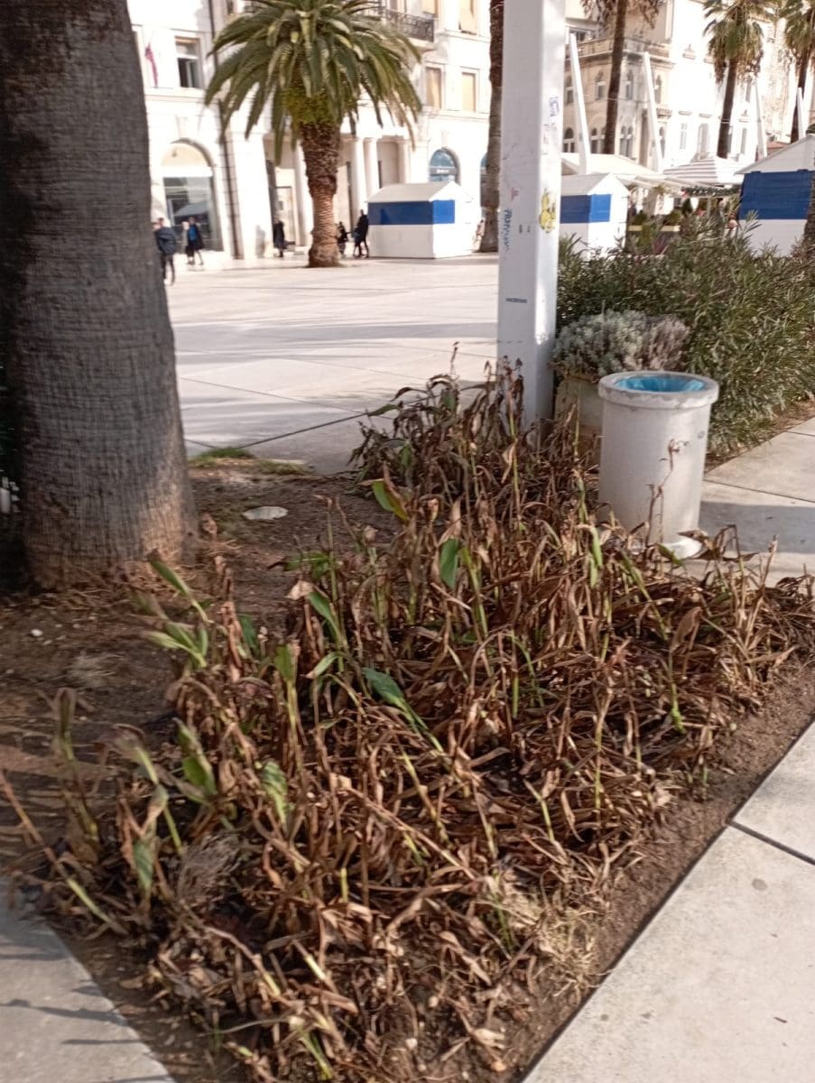 Usred Rive u Splitu prolaznici su imali priliku vidjeti osušenu i smeđu travnatu površinu.