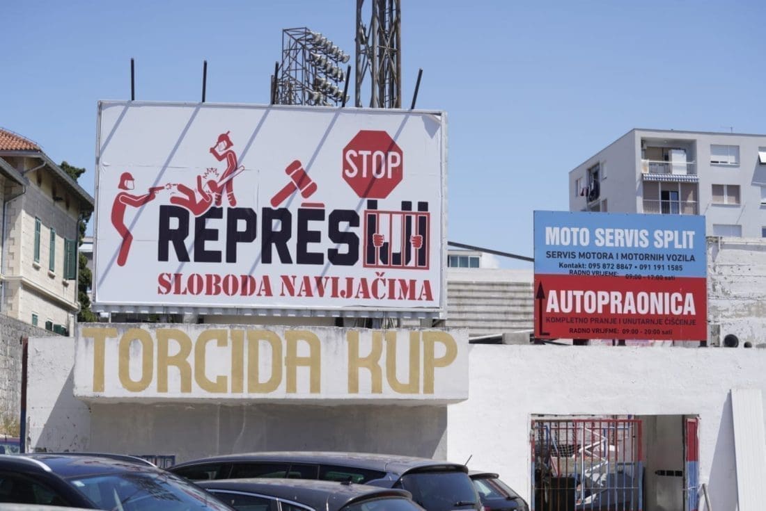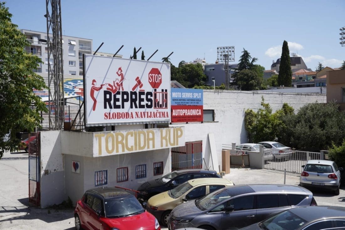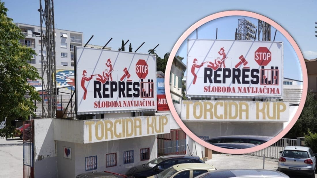 Na samom ulazu na popularnom nogometnom igralištu u splitskoj Vukovarskoj ulici jutros je osvanuo veliki jumbo plakat.
