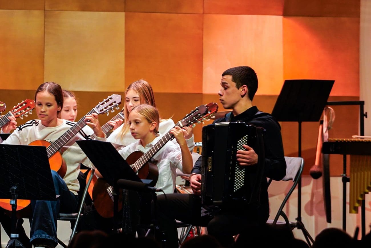 Pravo bogatstvo zvuka rezultat je sinergije gitarističkog orkestra (Luka Anđelić, Eva Berecka, Marieta Bizjak, Marita Buzolić, Sofia Cvitković, Mihovil Gavrančić, Paula Marević, Ante Miličić, Ani Milišić, Gabriel Milun, Mihaela Mitrović, Lovro Palavra, Tonka Stanišić, David Jun Tanase, Duje Trumbić, Antea Ružić), Duje Filipovića na violini i Luke Kosora na harmonici tijekom interpretacije „Samurajeve sjene“, vrlo zrele skladbe bogata zvuka i kompozicijske posloženosti. Oduševio nas je sinkronicitet i ujednačena boja, zbog čega su šarolike skupine djece i mladih djelovale kao pravi profesionalni orkestar.