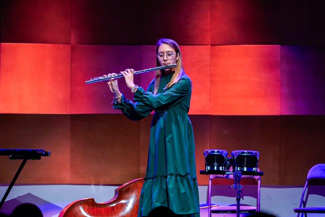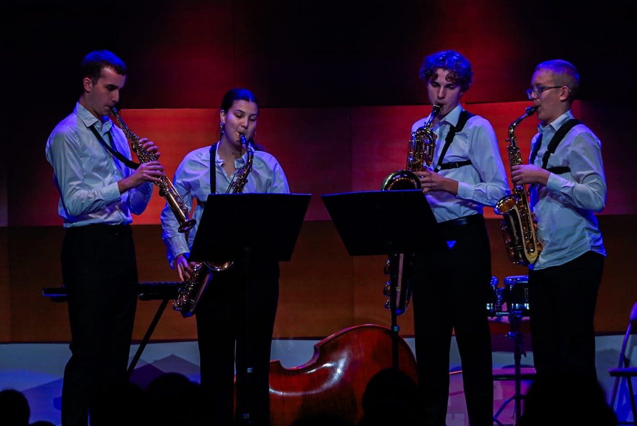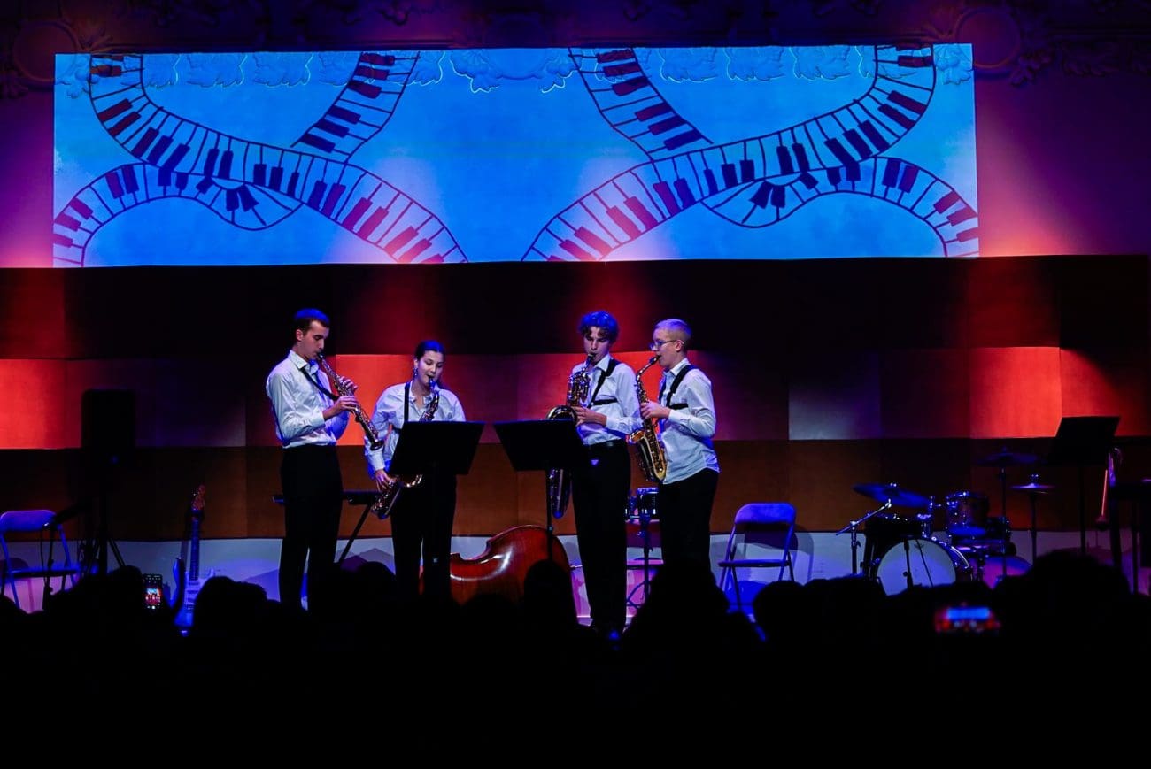 Kvartet saksofona (Tomo Domazet, Grgo Žamić, Margarita Valenta, Ante Barić) uz mentorstvo prof. Marka Gerbusa izveo je vrlo sadržajnu, neobičnu i skokovito dinamičnu skladbu Lile Sunko „Pariško plava noć“. Ono što je mladi Matoš radio s nokturalnom poezijom, Lila Sunko i izvrsni saksofonisti interpretirali su u zvuk – sva mističnost atmosfere i ljepota noćnog ugođaja prelili su se u skladbu. Glumci su potom izveli dosjetljiv skeč „Sa mnom ti nema šale“.