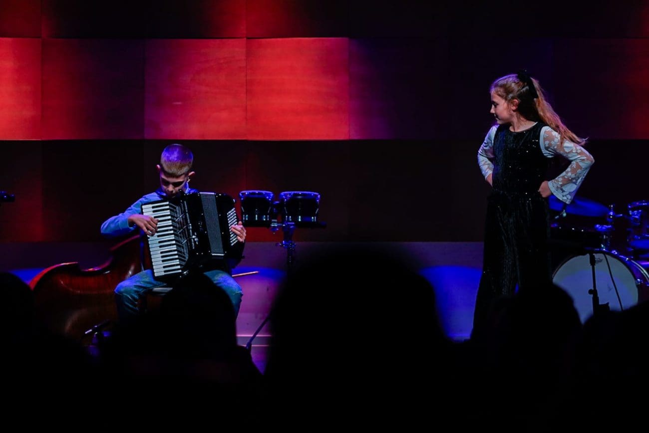 Petar Alujević na harmonici i glumica Mia Ančić bili su prave male zvijezde u izvedbi „Gospođice Majoneze“. Luko Paljetak kao da je pisao tekst za ovaj simpatični duo kojemu je pozornica očito drugi dom. Jedna od najljepših glazbenih točaka večeri bila je interpretacija „The Butterfly“ Danice Mandić na harfi. Mlada je glazbenica pokazala da taj divni instrument pruža mnogo veće mogućnosti od glissanda, u njezinoj se izvedbi osjetila sanjivost, nježnost, bajkovitost i vještina, uz topli biserni ton, jasnu harmoniju i eteričnost.