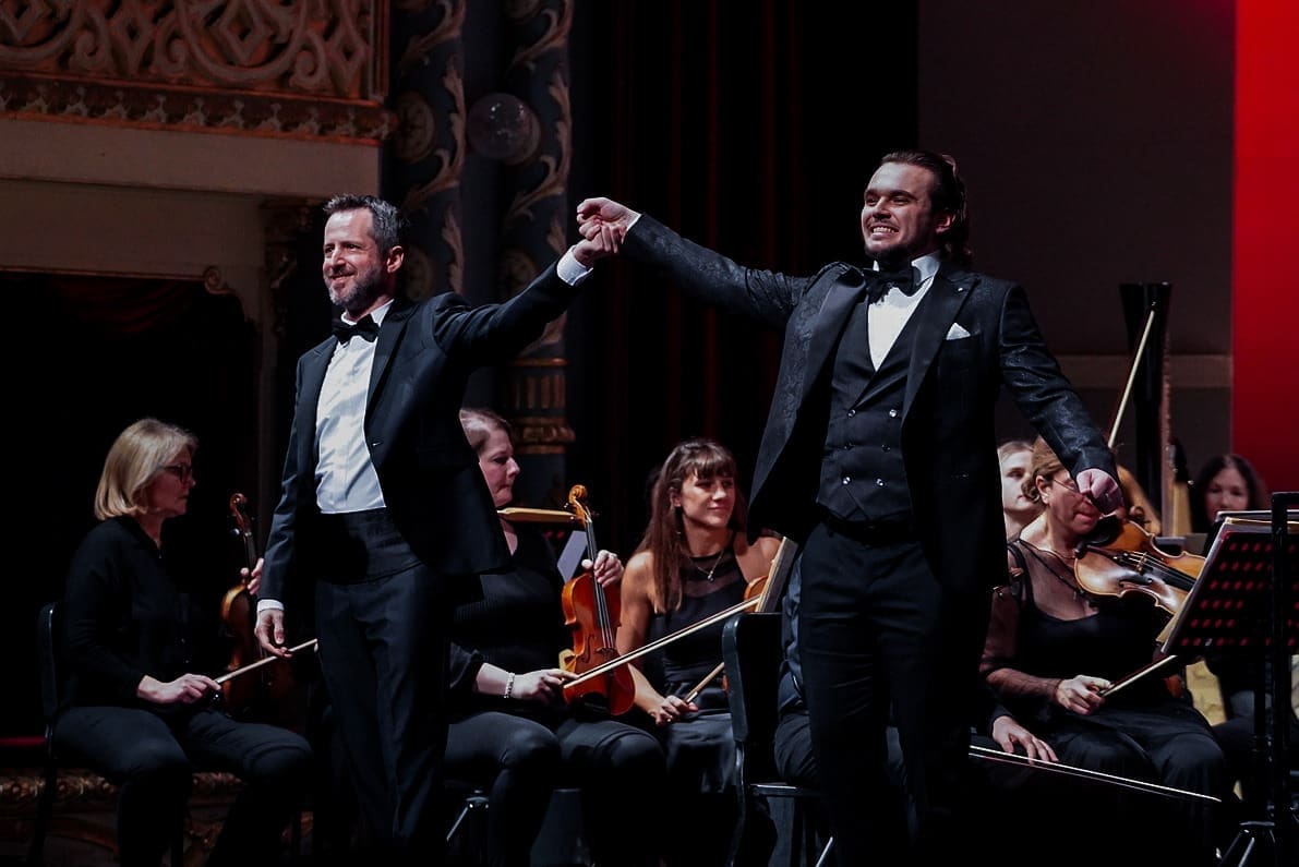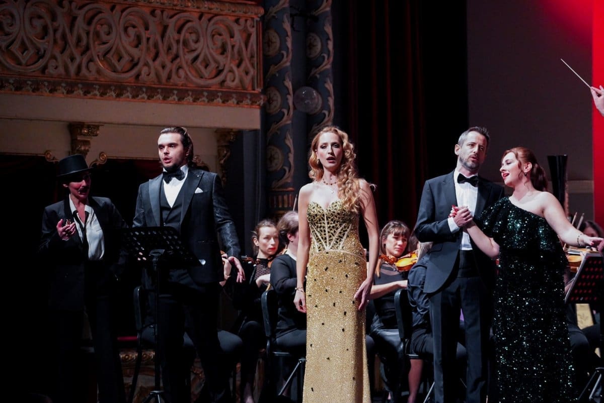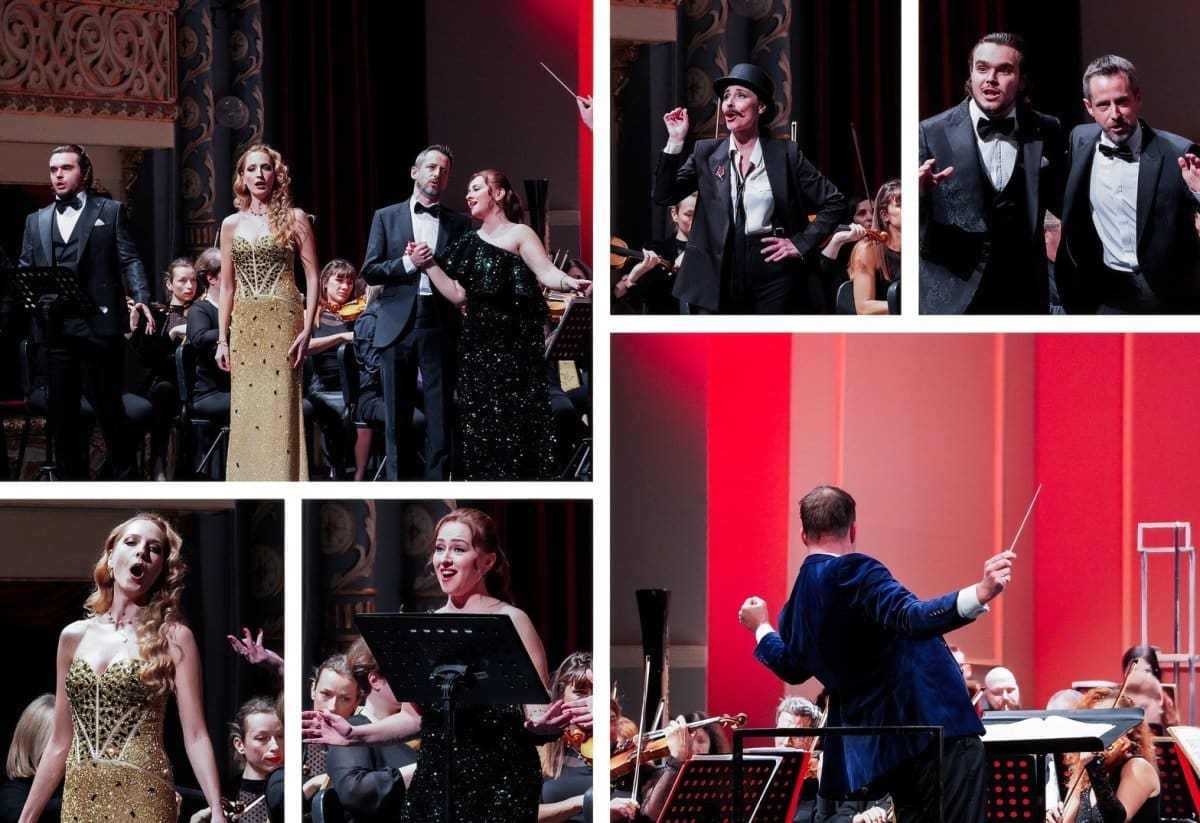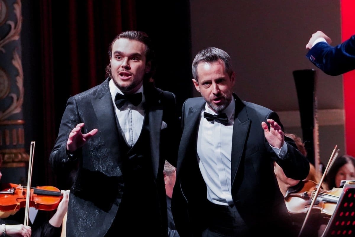 Prije svega pohvaljujemo fantastičan izbor glazbenih brojeva koji se pokazao kao pun pogodak za pravo prazničko veselje, ali i kao izvrstan materijal za nadahnute interpretacije Orkestra i solista. Već se u uvertiri „Šišmiša“ pokazalo da sviračima sjajno leži djelo koje zahtijeva živahnost, skokovit ritam, upečatljive solo dionice instrumenata i transfer energije između dirigenta i izvođača. Solisti su nakon briljantnog otvaranja Orkestra nastavili u istom tonu. Peterolist solista također je primjer izvrsnog izbora v.d. ravnateljice Sunčane Tušek, koji pokazuje šarolikost potencijala. Ana Malovan naznačila je ljepotu svog koloraturnog soprana izvodeći niz zahtjevnih ukrasa već na prvome slogu – tehničku zahtjevnost vokalnih skokova i visina odrađivala je s osmijehom (i pjevanim smijehom), bez pretjerane karikaturalnosti, ali s mnogo glumačke energije koju sjajno balansira s pjevanjem, ne dopuštajući da ton otiđe u pokazivanje sile koja bi mogla naštetiti točnosti i karakteru glazbenog ulomka. Izvrstan je izbor i Olesya Tokarenko, koja u duetu Rosalinde i Adele pokazuje drugu dimenziju ljepote soprana – voluminoznost, čistoću, jedrinu. Dok je Malovan visinom i vještinom bojila ukrase koji bljesnu u uhu razdraganih slušatelja, Tokarenko je odmjerenom snagom održavala melodiju u duetu i stabilizirala dinamiku solista u odnosu na moćan okrestar. Podsjetila nas je na svoj upečatljiv nastup u „Traviati“ gdje je također bila pokazala da, osim ljepote glasa, ima i toliko važan pjevački smisao za pravu mjeru.