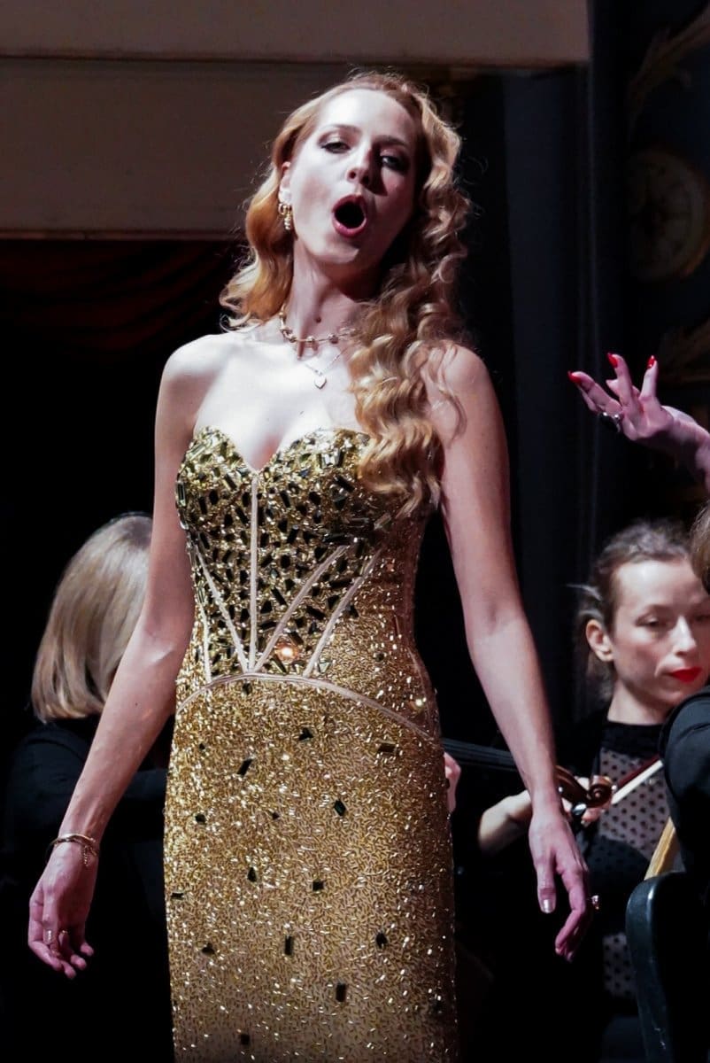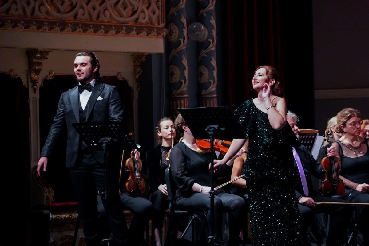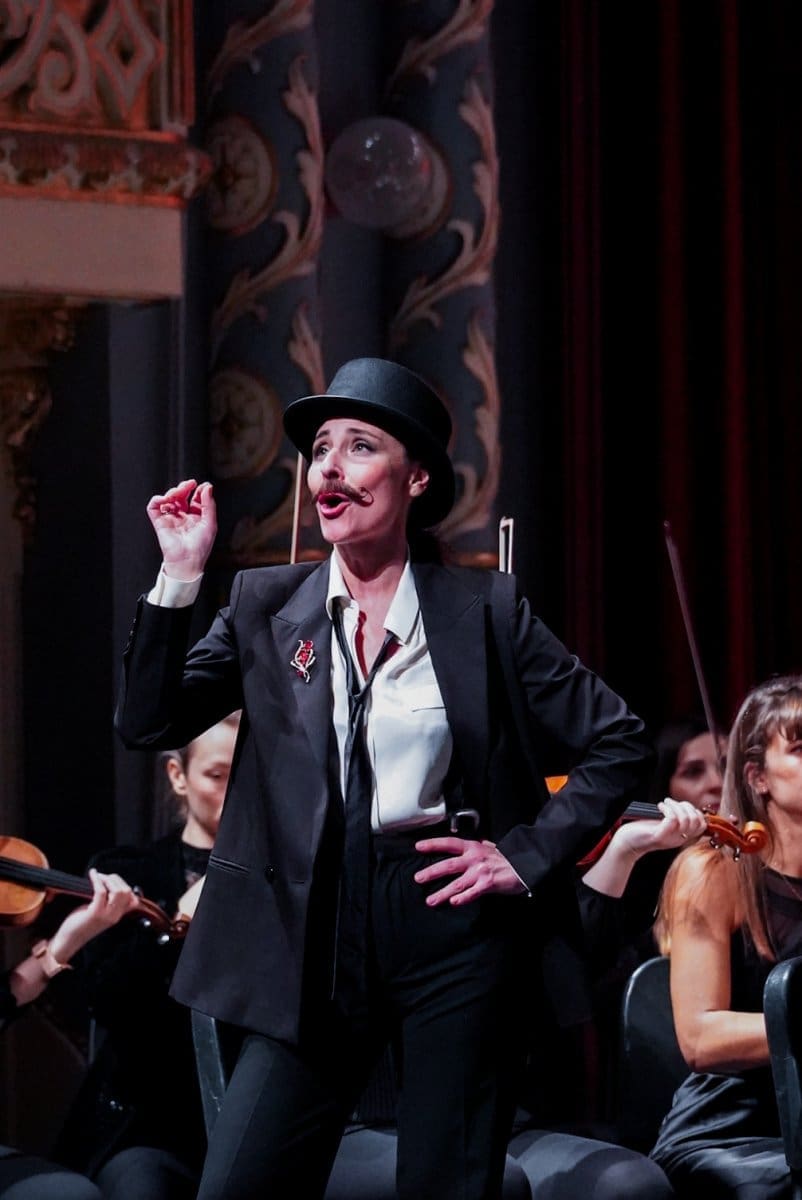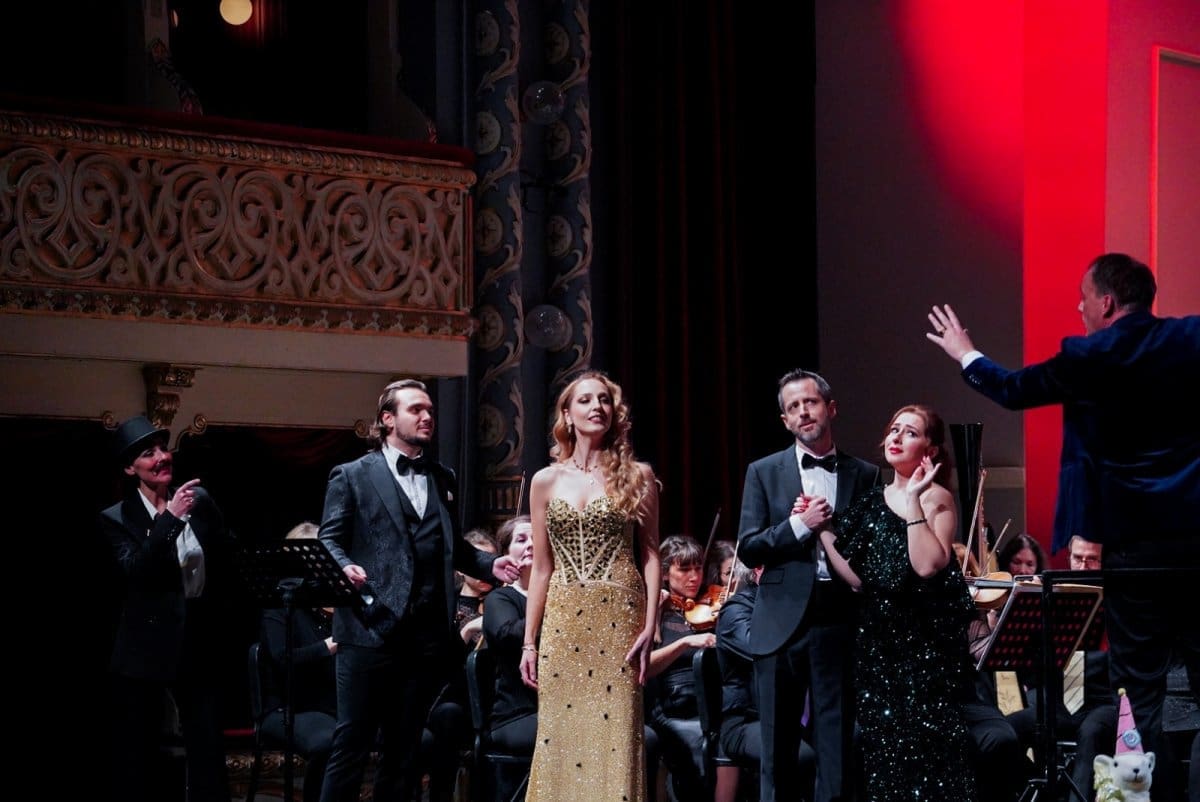 Prije svega pohvaljujemo fantastičan izbor glazbenih brojeva koji se pokazao kao pun pogodak za pravo prazničko veselje, ali i kao izvrstan materijal za nadahnute interpretacije Orkestra i solista. Već se u uvertiri „Šišmiša“ pokazalo da sviračima sjajno leži djelo koje zahtijeva živahnost, skokovit ritam, upečatljive solo dionice instrumenata i transfer energije između dirigenta i izvođača. Solisti su nakon briljantnog otvaranja Orkestra nastavili u istom tonu. Peterolist solista također je primjer izvrsnog izbora v.d. ravnateljice Sunčane Tušek, koji pokazuje šarolikost potencijala. Ana Malovan naznačila je ljepotu svog koloraturnog soprana izvodeći niz zahtjevnih ukrasa već na prvome slogu – tehničku zahtjevnost vokalnih skokova i visina odrađivala je s osmijehom (i pjevanim smijehom), bez pretjerane karikaturalnosti, ali s mnogo glumačke energije koju sjajno balansira s pjevanjem, ne dopuštajući da ton otiđe u pokazivanje sile koja bi mogla naštetiti točnosti i karakteru glazbenog ulomka. Izvrstan je izbor i Olesya Tokarenko, koja u duetu Rosalinde i Adele pokazuje drugu dimenziju ljepote soprana – voluminoznost, čistoću, jedrinu. Dok je Malovan visinom i vještinom bojila ukrase koji bljesnu u uhu razdraganih slušatelja, Tokarenko je odmjerenom snagom održavala melodiju u duetu i stabilizirala dinamiku solista u odnosu na moćan okrestar. Podsjetila nas je na svoj upečatljiv nastup u „Traviati“ gdje je također bila pokazala da, osim ljepote glasa, ima i toliko važan pjevački smisao za pravu mjeru.