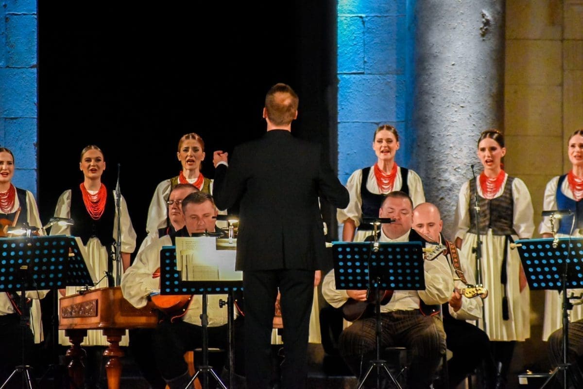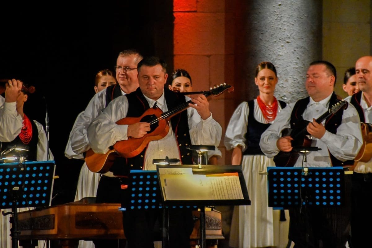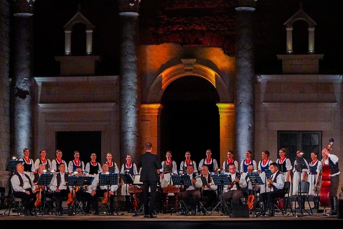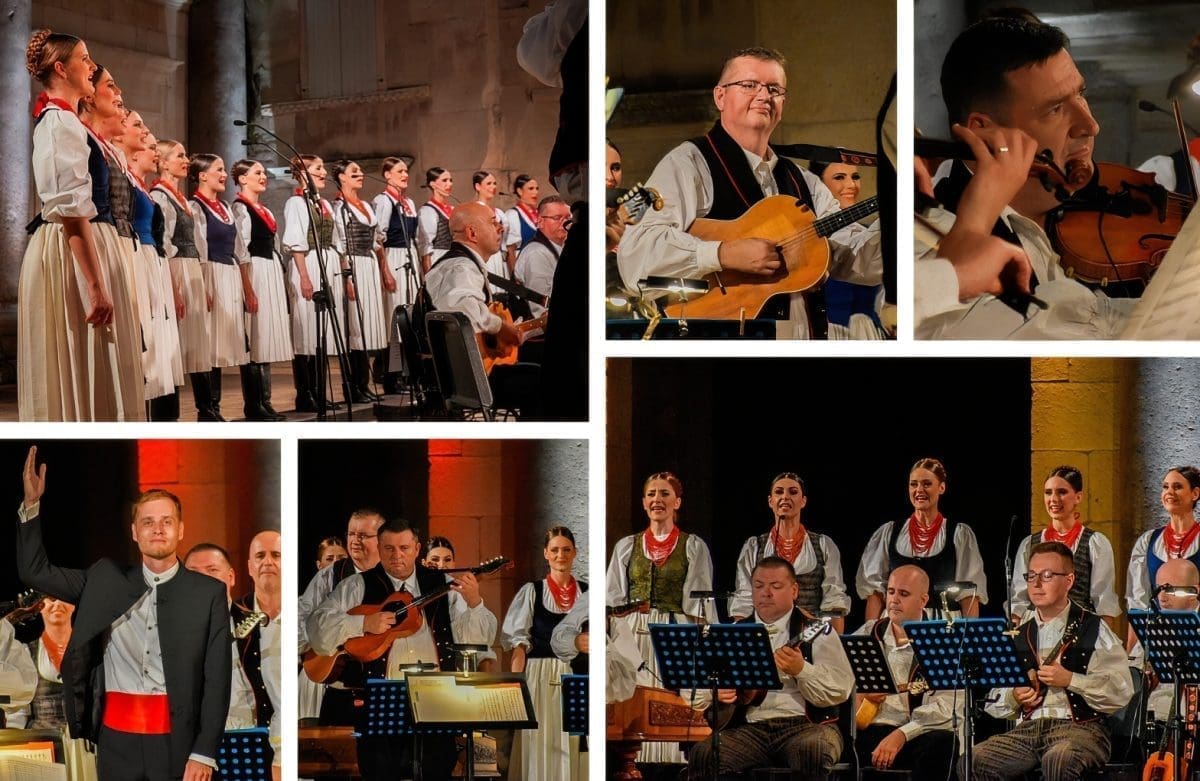 Tri predivna solistička glasa nosila su iznimno emotivnu melodiju skladbe „Bratec kosi“, a „Vezovi i jorgovani“ oduševili su puninom zvuka kojega je u melodičnim uzvicima bio pun Peristil. Skladbe „Kad se slegnu vode na livade“ i „Podravski čardaš“ poslužile su kao uvod u spektakularnu „Poleg vode Drave“, himničke pjesme Podravini u kojoj su se dramatično isprepleli instrumenti i zvonki glasovi. Toliko željen bis obilježen je srčanom izvedbom „Grad se beli preko Balatina“ i „Malo Međimurje“.