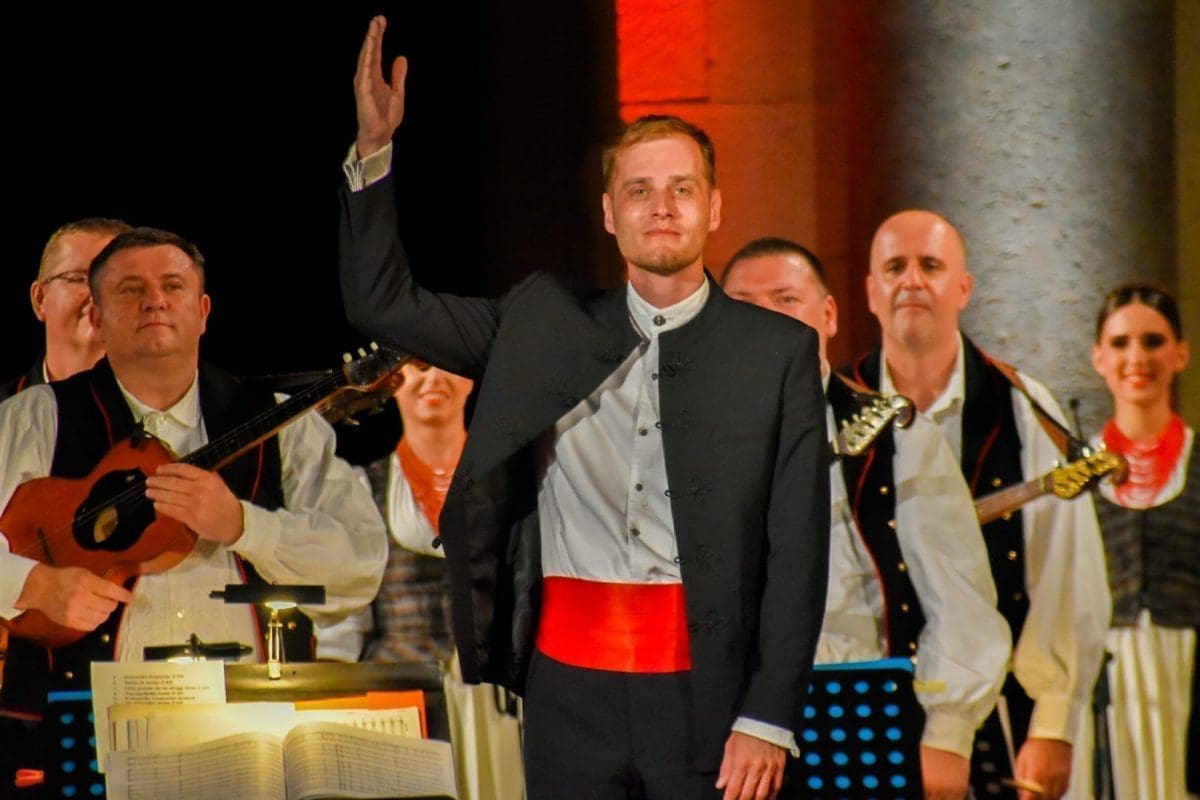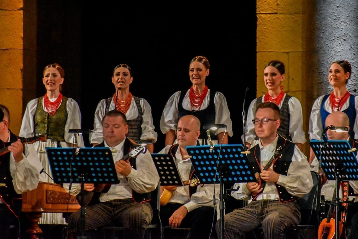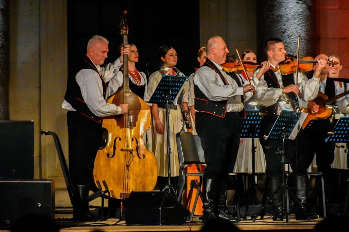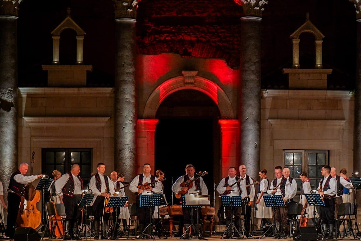 Tri predivna solistička glasa nosila su iznimno emotivnu melodiju skladbe „Bratec kosi“, a „Vezovi i jorgovani“ oduševili su puninom zvuka kojega je u melodičnim uzvicima bio pun Peristil. Skladbe „Kad se slegnu vode na livade“ i „Podravski čardaš“ poslužile su kao uvod u spektakularnu „Poleg vode Drave“, himničke pjesme Podravini u kojoj su se dramatično isprepleli instrumenti i zvonki glasovi. Toliko željen bis obilježen je srčanom izvedbom „Grad se beli preko Balatina“ i „Malo Međimurje“.