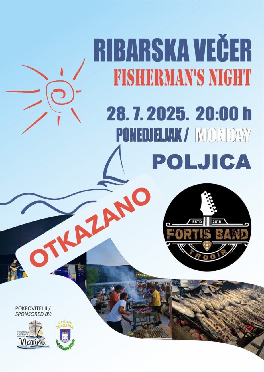 Ribarska večer koja se trebala održati u ponedjeljak, 28. srpnja 2025. godine s početkom u 20 sati u Poljicima, uz glazbeni nastup Fortis Banda, nažalost je otkazana zbog nepovoljnih vremenskih uvjeta.