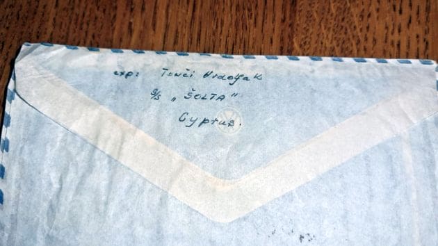 I točno, na poleđini pisma stoji ime Tonča Vrdoljaka s broda Šolta u ciparskim vodama, koji je to pismo napisao u travnju 1960. godine.