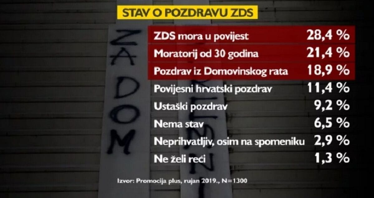 Istraživanje je također dalo odgovor na pitanje što uopće građani misle o spornom pozdravu pa tako 28,4 posto smatra da "ZDS'' mora otići u povijest.