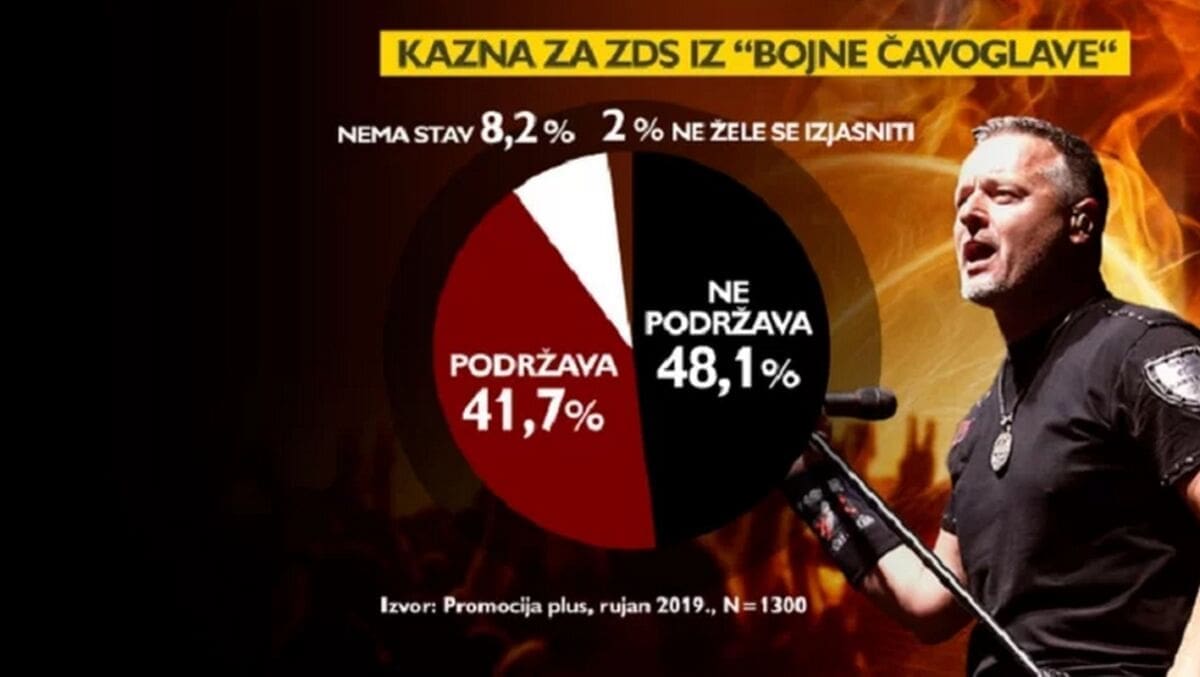 Gotovo polovina hrvatskih građana, točnije 48 posto ispitanih, ne podržava presudu Visokog prekršajnog suda kojom se kažnjava pozdrav "ZDS" iz pjesme "Bojna Čavoglave" Marka Perkovića Thompsona.