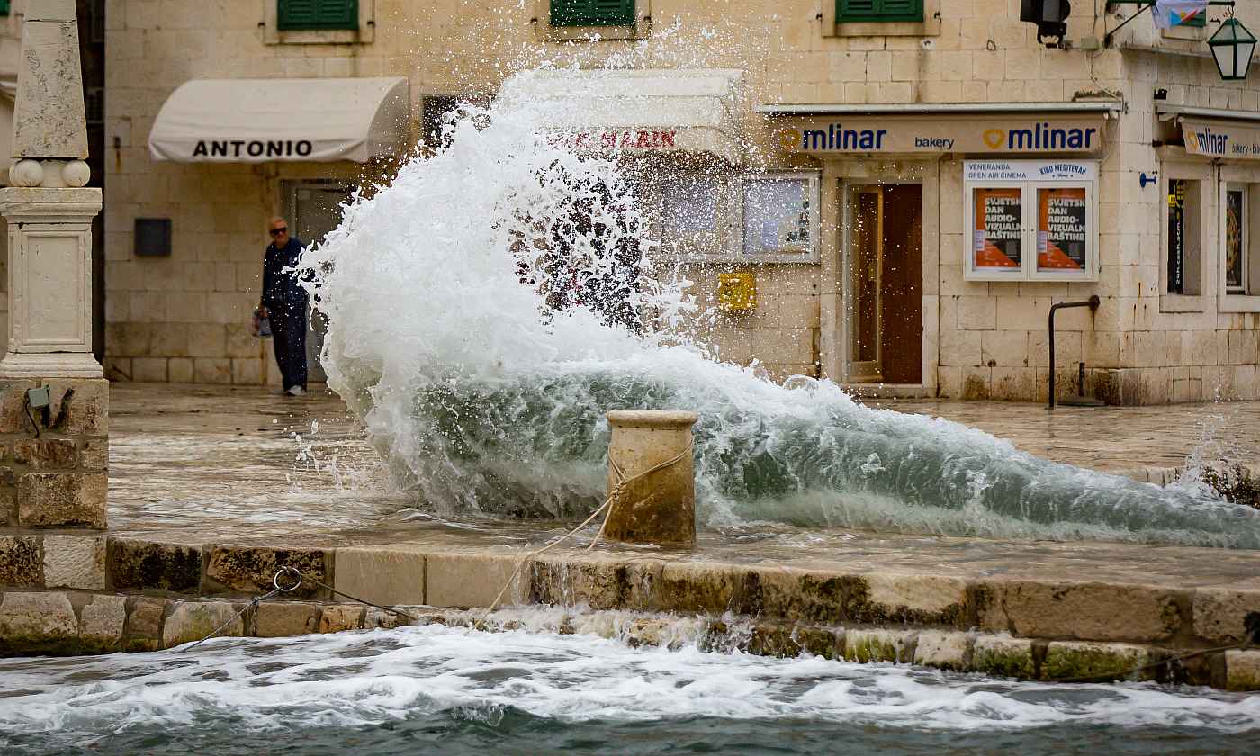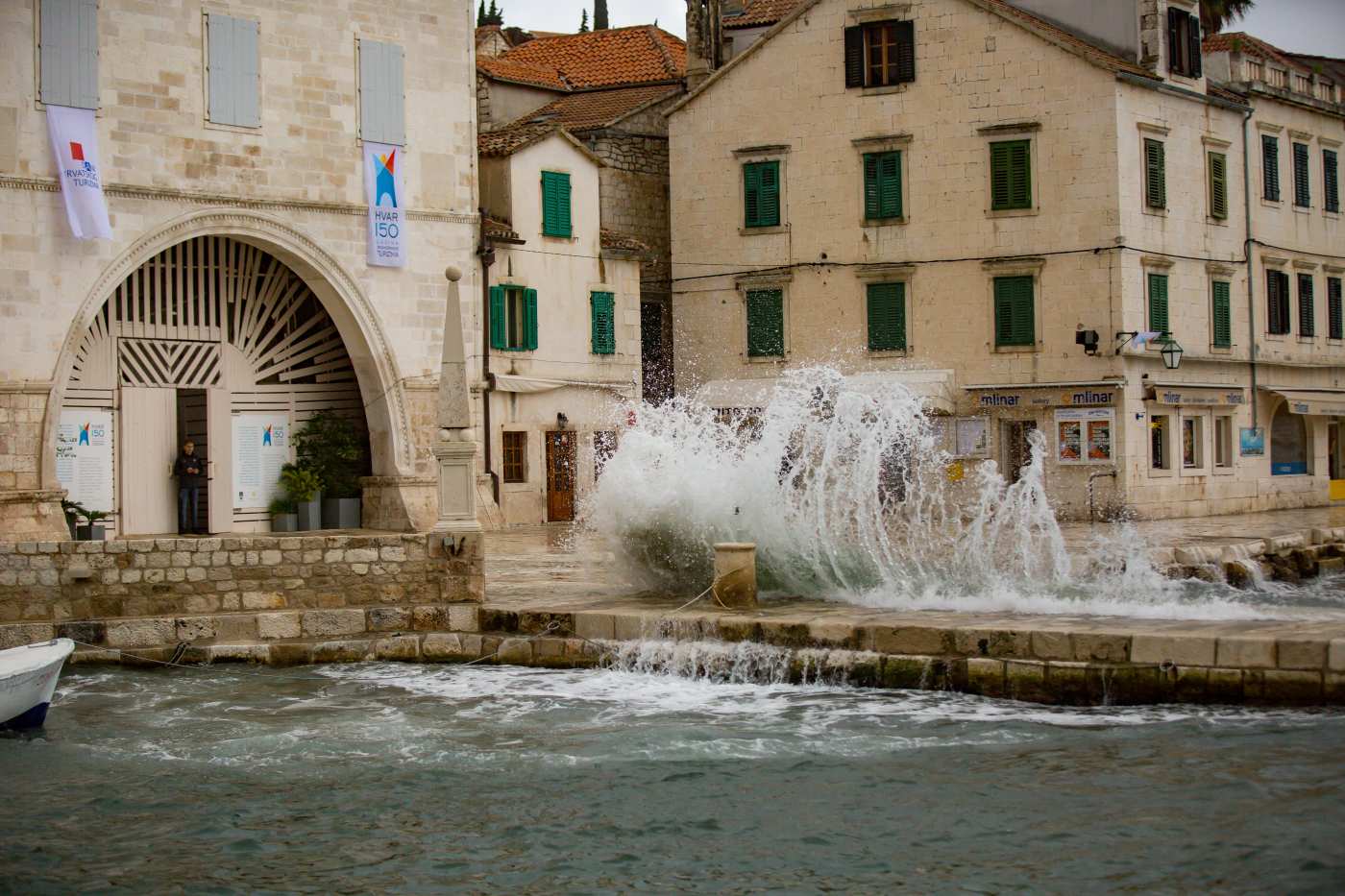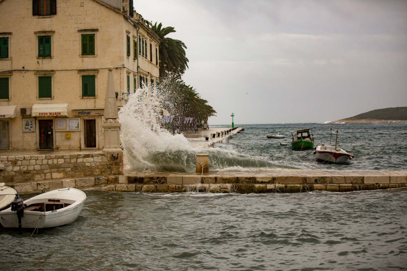 Uz visoke valove, danas je ponegdje već bilo pojave dizanja razine mora zbog niskog tlaka zraka, u što se možete uvjeriti u fotogaleriji Jakše Kuzmičića s otoka Hvara.