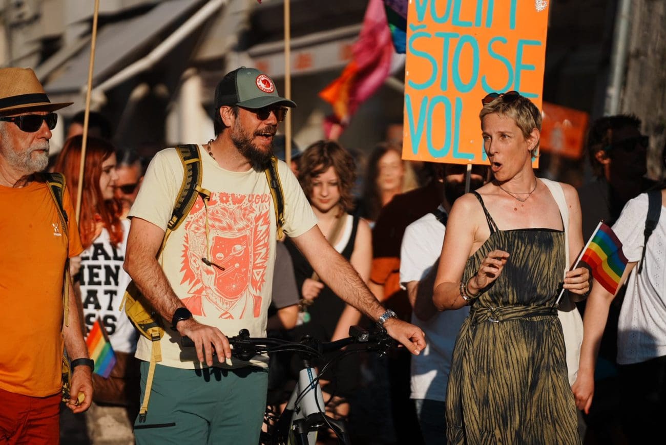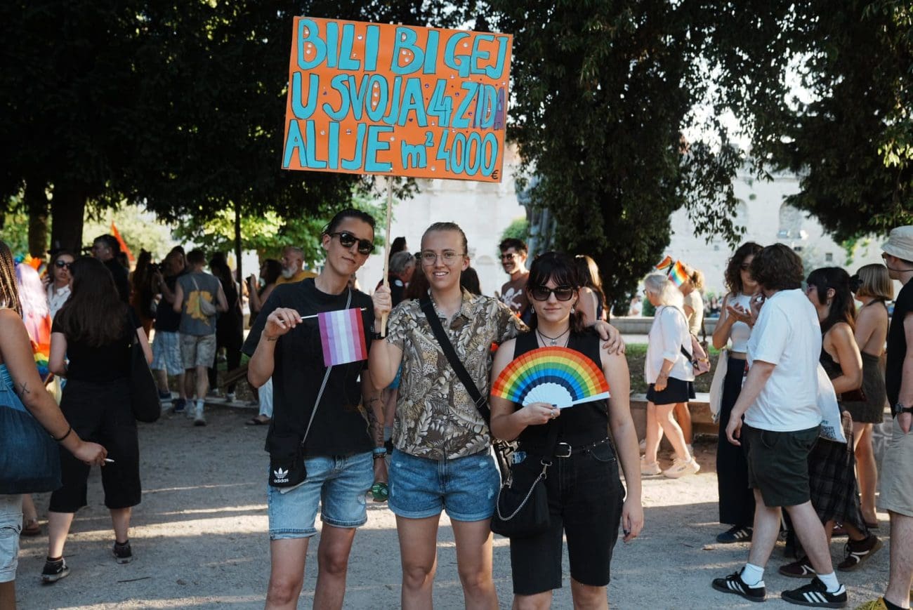 Za sve ljude dobre volje i u inat svima onima koji bi najradije da nas nema. Otpor, ljubav i sloboda. Živio prajd!", poručili su govorom na Pjaci.