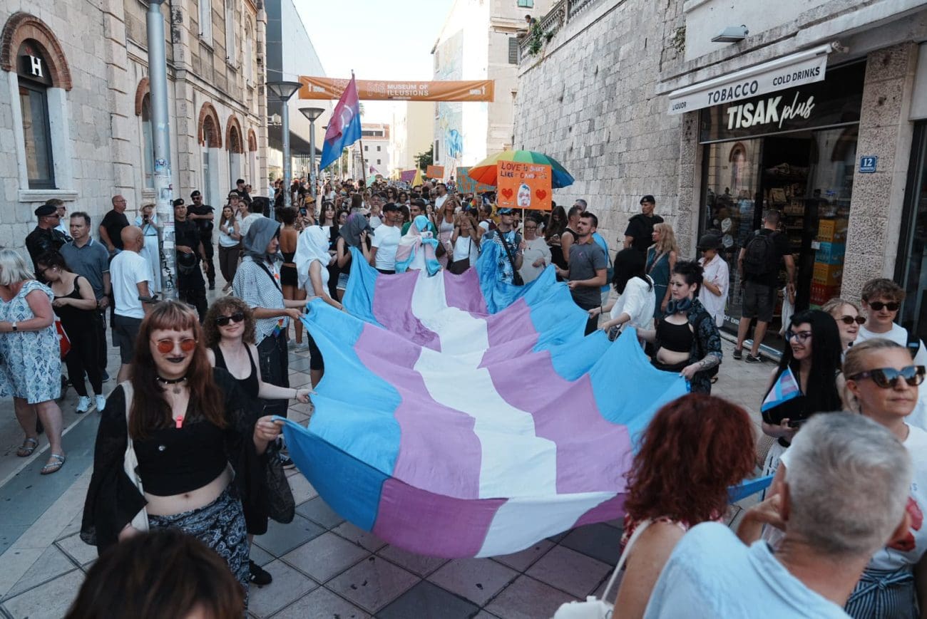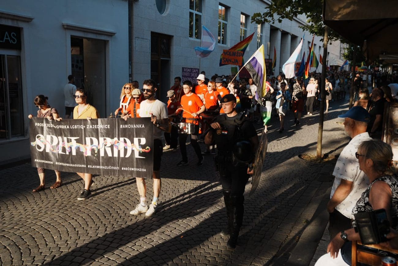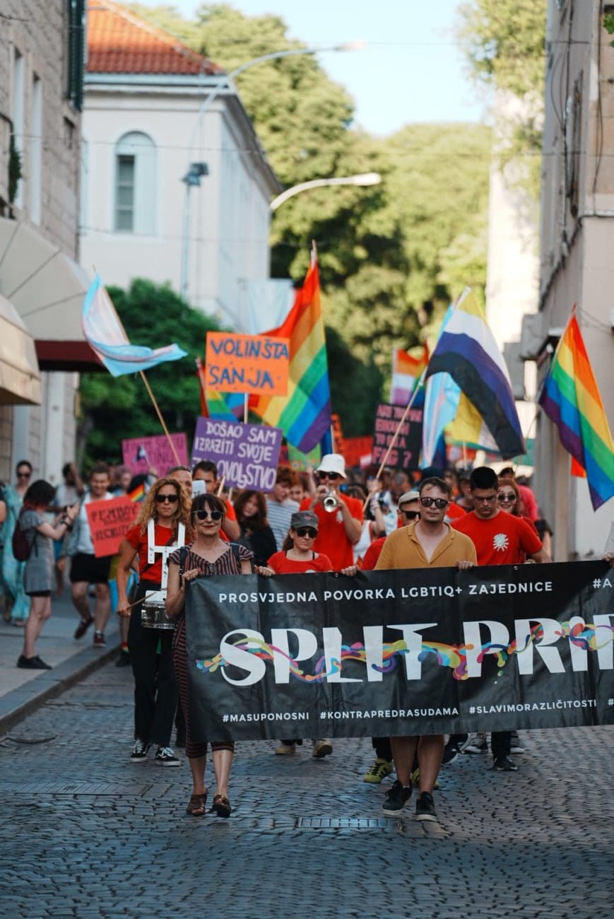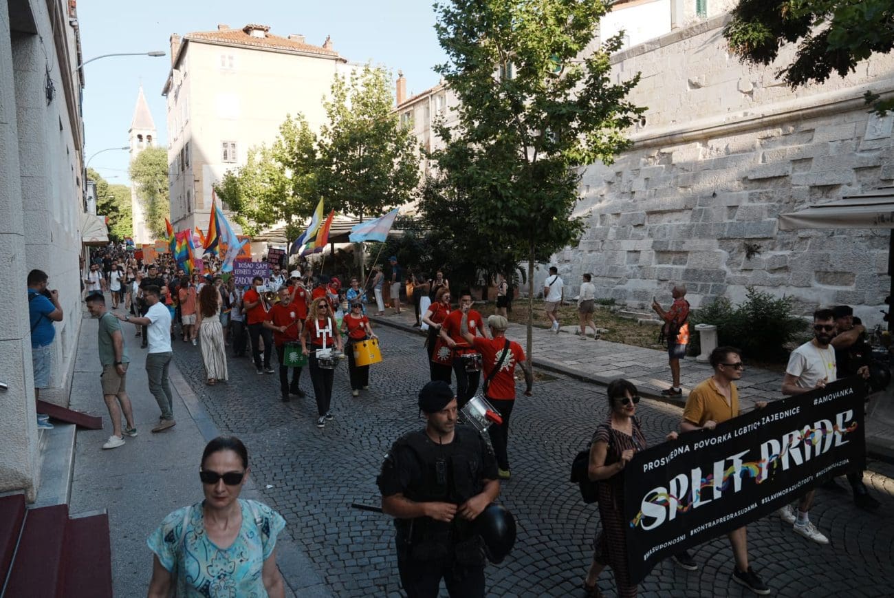 Ovogodišnja tema – „društveni prostori i prepreke s kojima se LGBTIQ+ osobe susreću u svakodnevici“ – bila je u središtu govora na Narodnom trgu. Povorku je predvodila Klapa Klape, a kao i uvijek kratko su se zadržali i na Pjaci gdje je održan govor.
