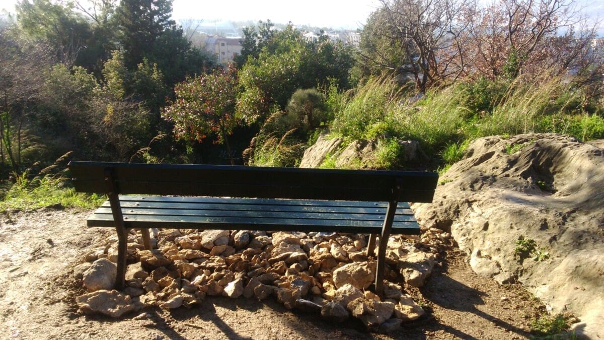 Otuđena klupa je posebno omiljena posjetiteljima jer se nalazi na najljepšoj lokaciji parka s pogledom na Kaštelanski zaljev, Marjan, nogometni stadion Hajduka, bazene itd.