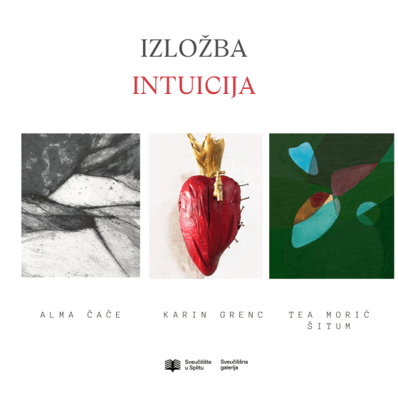 Otvaranje izložbe „Intuicija“ na kojoj će se predstaviti umjetnice Alma Čače, Karin Grenc i Tea Morić Šitum održat će se u petak, 12. siječnja s početkom u 19 sati u Sveučilišnoj galeriji, R. Boškovića 31. Izložbu će predstaviti kustosica Vanda Franičević, a ostat će otvorena do 31. siječnja.