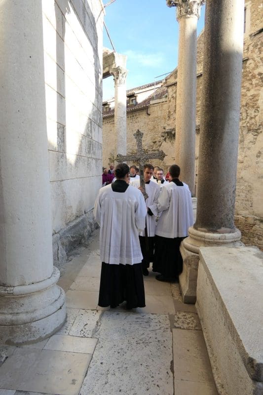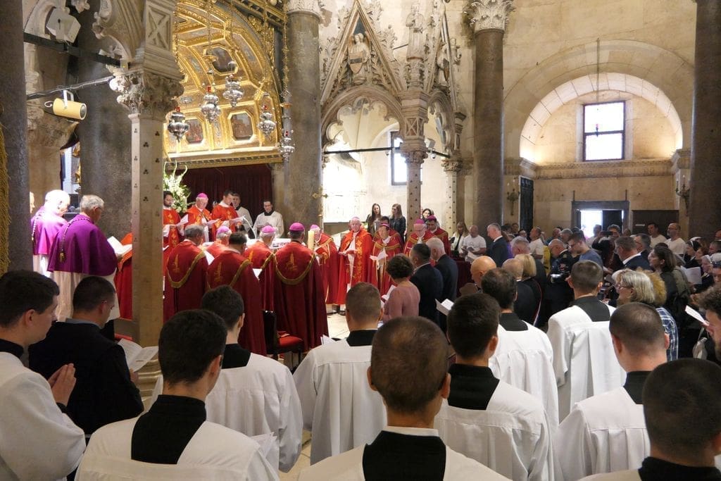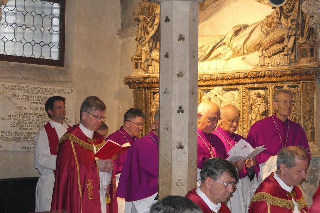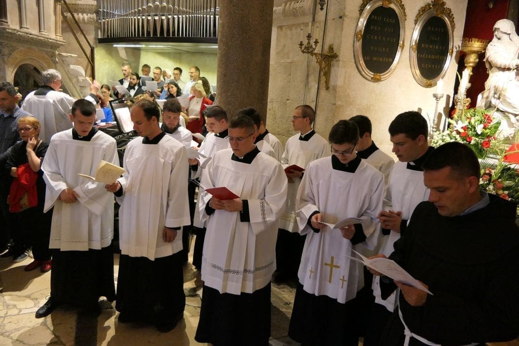 Mješoviti prvostolni zbor sv. Dujma pod ravnanjem maestra Šime Marovića, uz orguljsku pratnju s. Mirte Škopljanac Mačina, i zbor bogoslova uz mnoštvo puka, radosno su otpjevali večernju molitvu. Zatim je mons. Zdenko Križić zazvao Božji blagoslov na sve nazočne, a himnom u čast sv. Dujmu završila je svečana Večernja i devetodnevna priprava za blagdan sv. Dujma, zaštitnika grada Splita i Splitsko-makarske nadbiskupije.