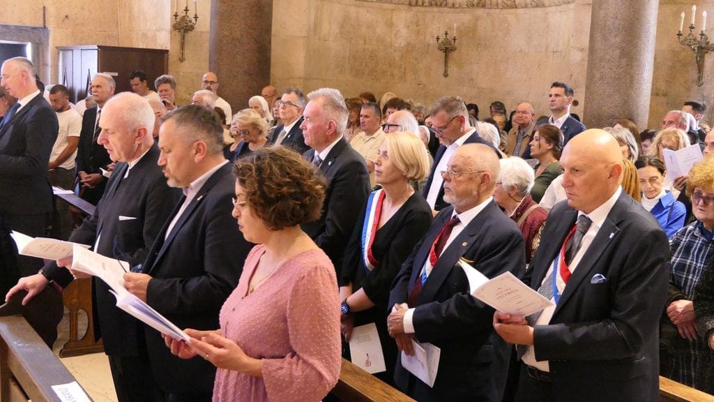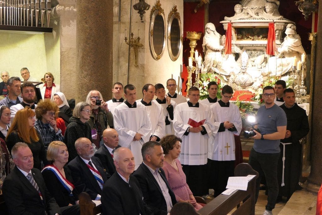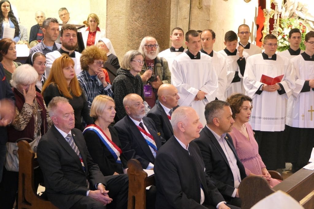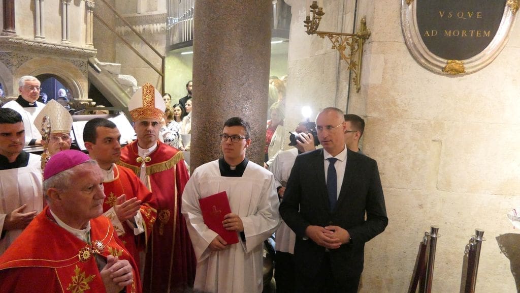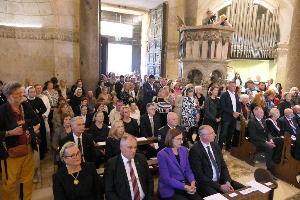 Na svečanosti su sudjelovali: riječki nadbiskup mons. Mate Uzinić, nadbiskup barski, apostolski upravitelj kotorske biskupije te primas Srbije Rrok Gjonlleshaj, šibenski biskup mons. Tomislav Rogić, hvarski biskup mons. Ranko Vidović, dubrovački biskup mons. Roko Glasnović, novoimenovani požeški biskup mons. Ivo Martinović, splitsko-makarski nadbiskup u miru mons. Marin Barišić, zadarski nadbiskup u miru mons. Želimir Puljić, kotorski biskup u miru mons. Ilija Janjić, šibenski biskup u miru mons. Ante Ivas, provincijal Franjevačke provincije Presvetog Otkupitelja fra Marko Mrše, provincijal Hrvatske provincije svetog Jeronima franjevaca konventualaca fra Miljenko Hontić, generalni vikar Splitsko-makarske nadbiskupije mons. Franjo-Frankopan Velić, generalni tajnik Hrvatske biskupske konferencije mons. Krunoslav Novak, kanonik zagrebačkog Prvostolnog kaptola i generalni postulator za kauze beatifikacije i kanonizacije Zagrebačke nadbiskupije mons. Juraj Batelja, pastoralni vikar Splitsko-makarske nadbiskupije mons. Nediljko Ante Ančić, kanonici na čelu s prepozitom don Radojkom Vidovićem te ostali svećenici, gradonačelnik Splita Ivica Puljak da suprugom, župan Splitsko-dalmatinske županije Blaženko Boban, izaslanik predsjednika Hrvatskog sabora Andro Krstulović Opara, dekan Sveučilišta u Splitu prof. dr. sc. Dragan Ljutić sa suprugom, predsjednik Županijske skupštine Splitsko-dalmatinske županije Mate Šimundić, predstavnik Policijske uprave splitsko-dalmatinske Ivica Franić te ostali.