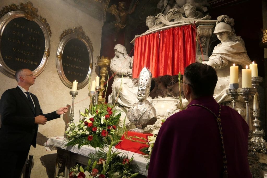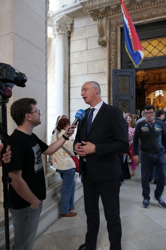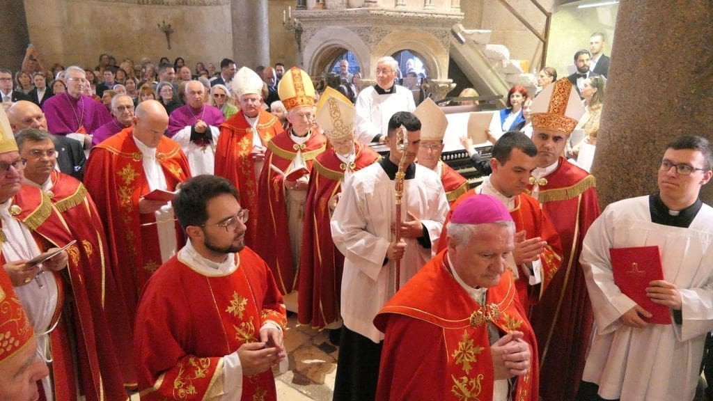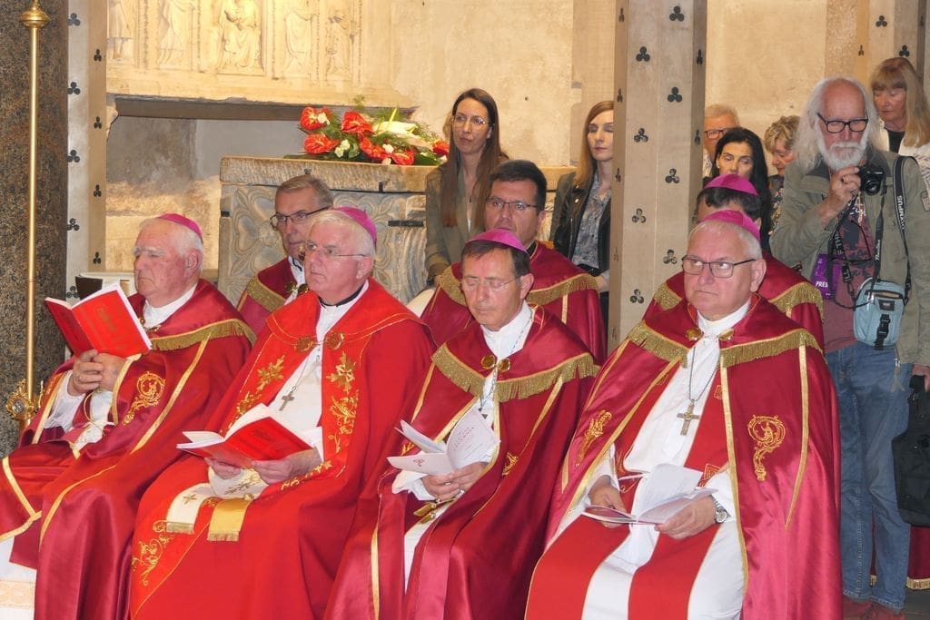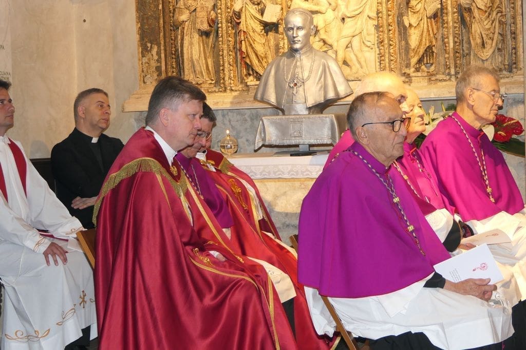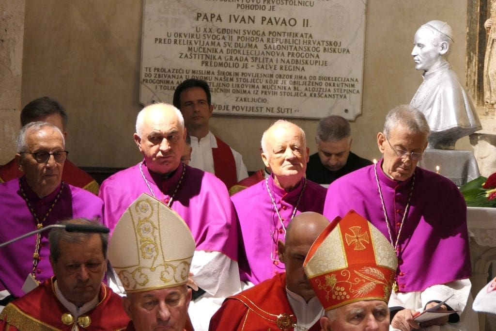 Na svečanosti su sudjelovali: riječki nadbiskup mons. Mate Uzinić, nadbiskup barski, apostolski upravitelj kotorske biskupije te primas Srbije Rrok Gjonlleshaj, šibenski biskup mons. Tomislav Rogić, hvarski biskup mons. Ranko Vidović, dubrovački biskup mons. Roko Glasnović, novoimenovani požeški biskup mons. Ivo Martinović, splitsko-makarski nadbiskup u miru mons. Marin Barišić, zadarski nadbiskup u miru mons. Želimir Puljić, kotorski biskup u miru mons. Ilija Janjić, šibenski biskup u miru mons. Ante Ivas, provincijal Franjevačke provincije Presvetog Otkupitelja fra Marko Mrše, provincijal Hrvatske provincije svetog Jeronima franjevaca konventualaca fra Miljenko Hontić, generalni vikar Splitsko-makarske nadbiskupije mons. Franjo-Frankopan Velić, generalni tajnik Hrvatske biskupske konferencije mons. Krunoslav Novak, kanonik zagrebačkog Prvostolnog kaptola i generalni postulator za kauze beatifikacije i kanonizacije Zagrebačke nadbiskupije mons. Juraj Batelja, pastoralni vikar Splitsko-makarske nadbiskupije mons. Nediljko Ante Ančić, kanonici na čelu s prepozitom don Radojkom Vidovićem te ostali svećenici, gradonačelnik Splita Ivica Puljak da suprugom, župan Splitsko-dalmatinske županije Blaženko Boban, izaslanik predsjednika Hrvatskog sabora Andro Krstulović Opara, dekan Sveučilišta u Splitu prof. dr. sc. Dragan Ljutić sa suprugom, predsjednik Županijske skupštine Splitsko-dalmatinske županije Mate Šimundić, predstavnik Policijske uprave splitsko-dalmatinske Ivica Franić te ostali.