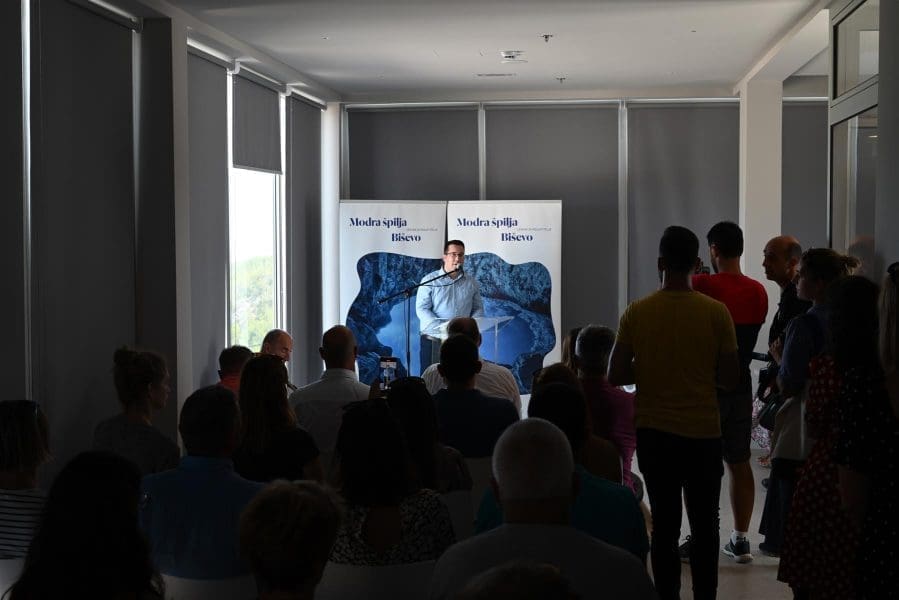 Župan Splitsko-dalmatinske županije Blaženko Boban otvorio je danas na Biševu pored Visa Centar za posjetitelje Modra Špilja – Biševo. Radi se o projektu vrijednom 27 milijuna kuna koji kroz brojne sadržaje koje nudi doprinosi održivom razvoju Biševa. „Proveli smo jako puno aktivnosti. Nije to samo gradnja ovoga centra. To su i poučne tematske staze koje je realizirala javna ustanova „More i krš”, a tu je i uređenje obalne topničke bitnice s prekrasnim vidikovcem. Napravili smo i niz važnih dokumenata poput strateškog plana, strategije brendiranja i studije valorizacije prirodne baštine”, navodi gradonačelnica Komiže Tonka Ivčević.