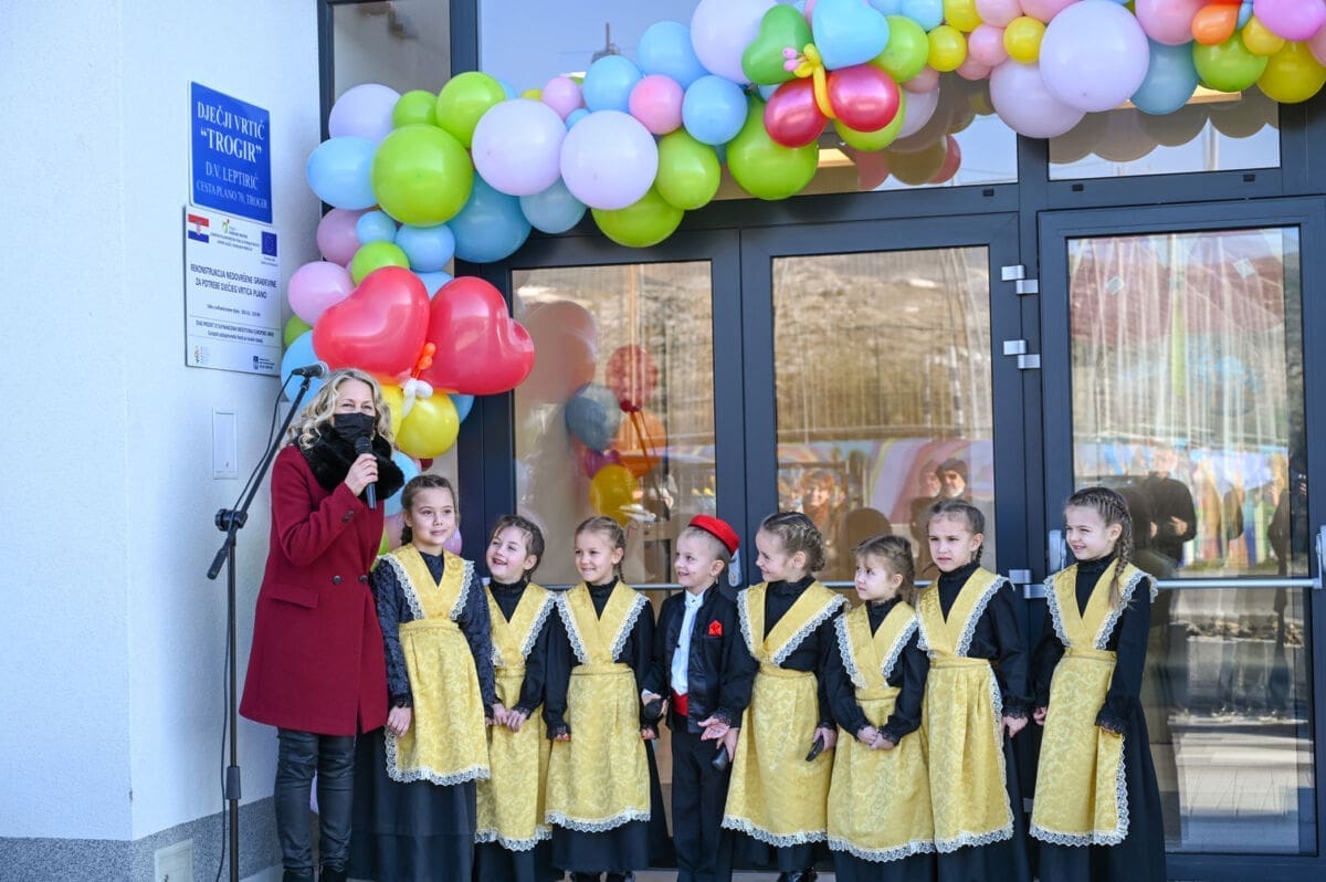U Trogiru je danas otvoren novi Dječji vrtić „Leptirić“, suvremeno uređeni objekt koji će primati dvije cjelodnevne skupine po 20-ero djece te još jednu posebnu skupinu za djecu s teškoćama, inače prvu takvu na području Trogira.