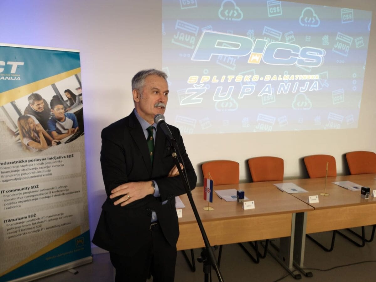 Ovaj program spona je znanosti, poduzetništva i u ovom slučaju regionalne zajednice, odnosno Splitsko dalmatinske županije. Prostor u kojem se nalazimo je prostor splitskog Sveučilišta kojeg smo dobili kao Županija, a u potpunosti je opremljen u proteklih godinu dana. Ovim PICS programom želimo napraviti svojevrsni predinkubator. Veseli me što je jako veliki interes za ovaj projekt. Pojedini studenti već jesu na tržištu ICT sektora. Ovo je ono gdje će se u budućnosti crpiti onaj potencijal koji nam u ovom trenutku nedostaje, a to je kadrovski potencijal u IT sektoru, rekao je župan.