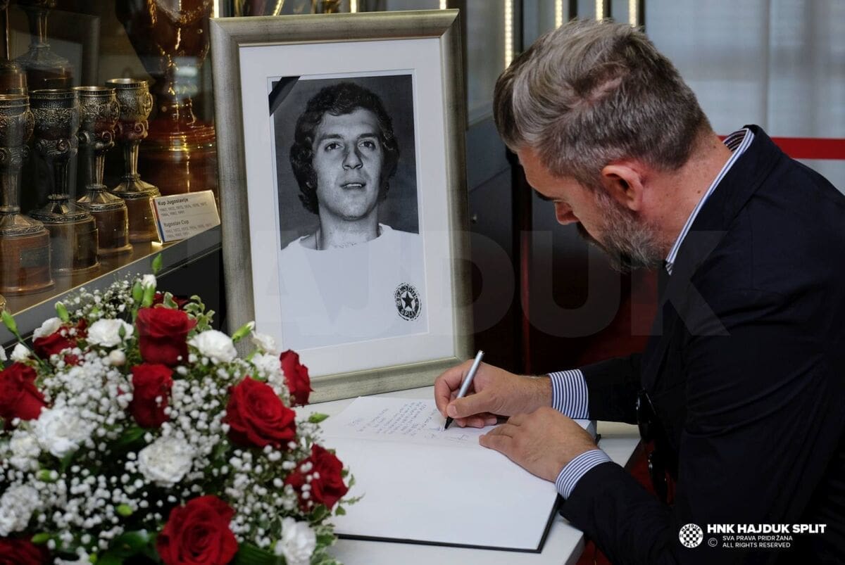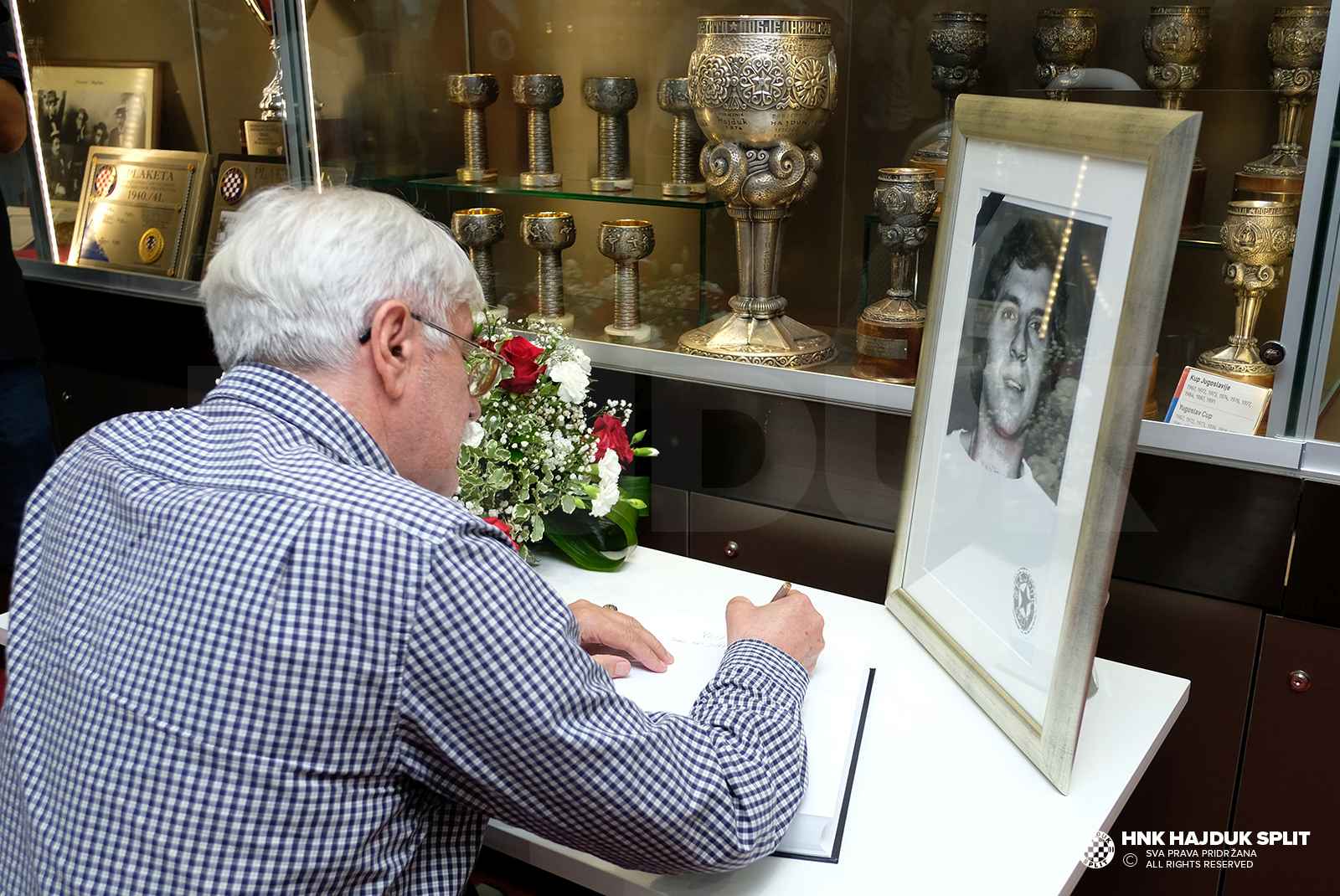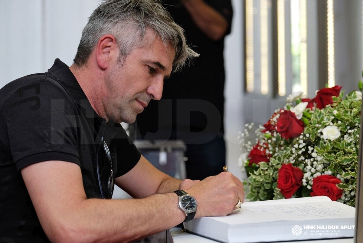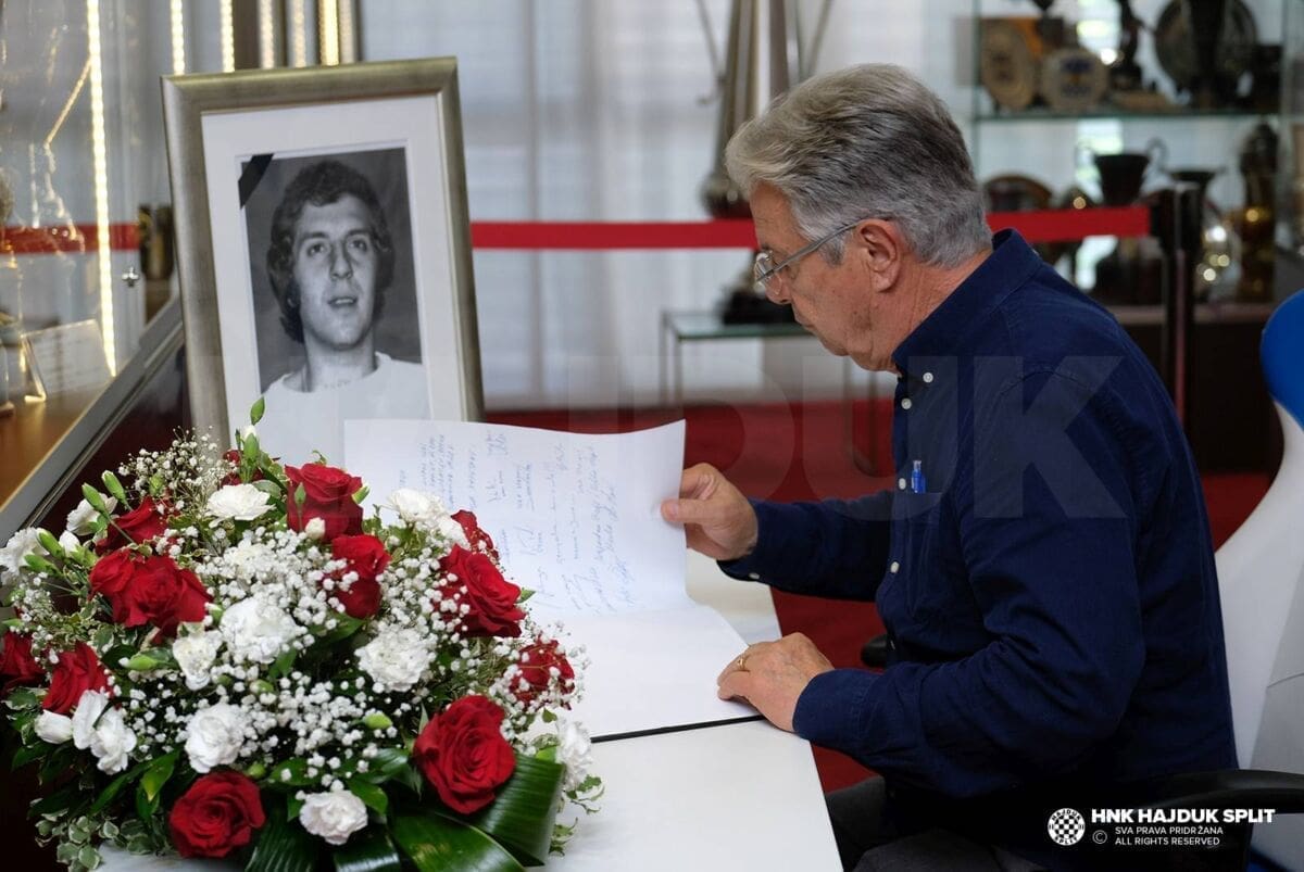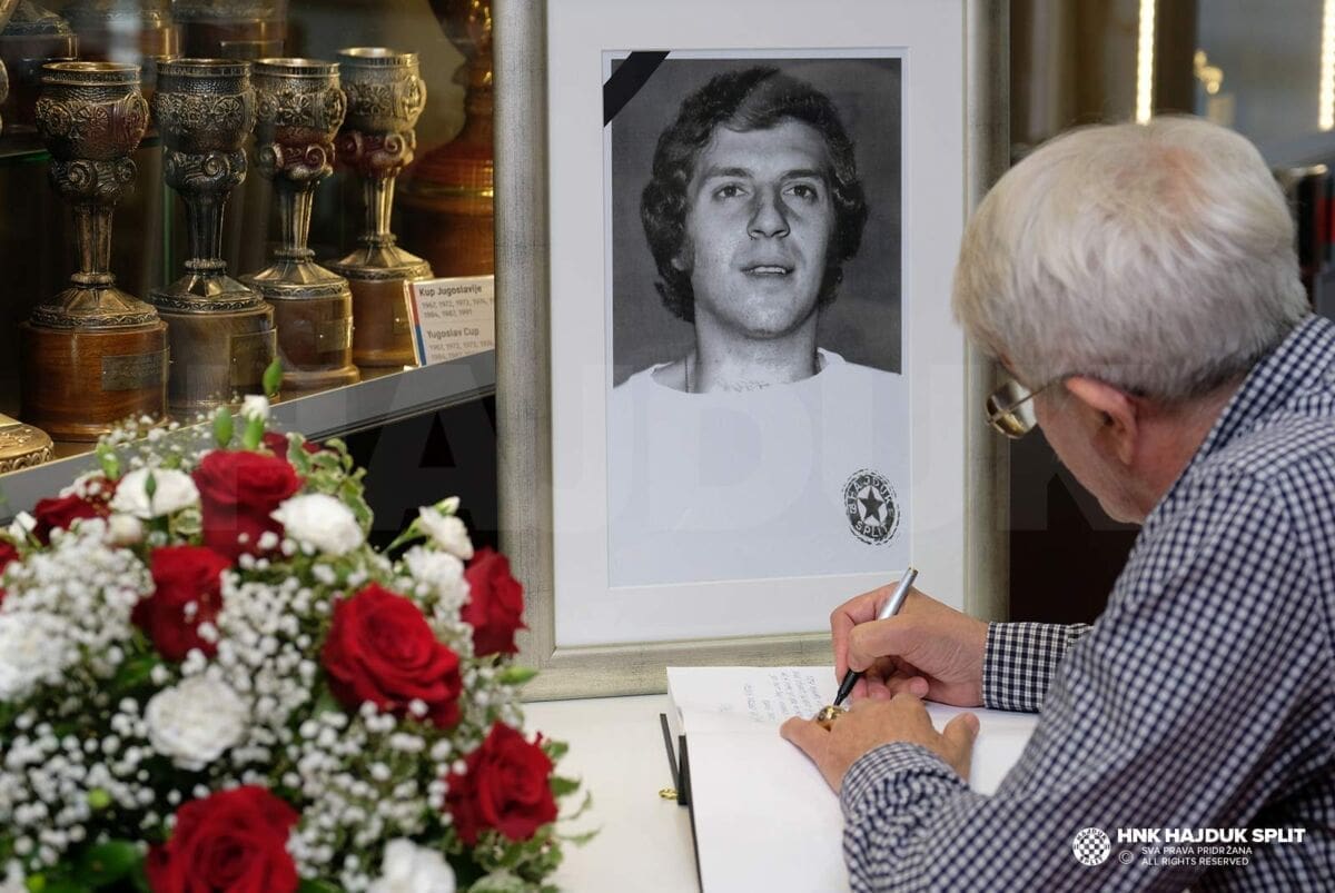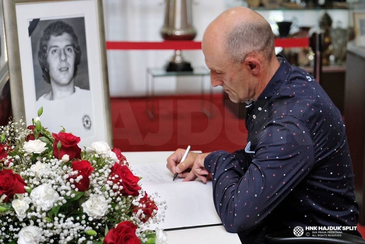 Danas točno u 14 sati otvoren je Trofejni salon na Poljudu u kojem se do sutra u 11 sati možete upisati u Knjigu sućuti našem preminulom virtuozu Jurici Jerkoviću.