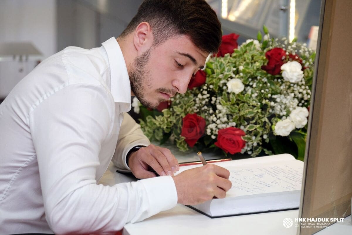 Prvi su u Knjizi poruke ostavili predsjednik Uprave HNK Hajduk Marin Brbić, dopredsjednik Lukša Jakobušić, predsjednik Skupštine Vinko Radovani, sportski direktor Saša Bjelanović, zatim predsjednik udruge veterana HNK Hajduk Vlatko Đolonga, dopredsjednik Darko Miladin, veterani Ante Ivković Zonzi, Stipe Pletikosa, Igor Tudor, Nenad Pralija, Dragutin Ćelić, Željko Mijač, Ivan Jerković (član obitelji našeg Jurice), u ime prve momčadi kapetan Josip Juranović, zatim Petar Lovrić, Petar Bakotić, Boris Marin, tajnik veterana Goran Brailo...