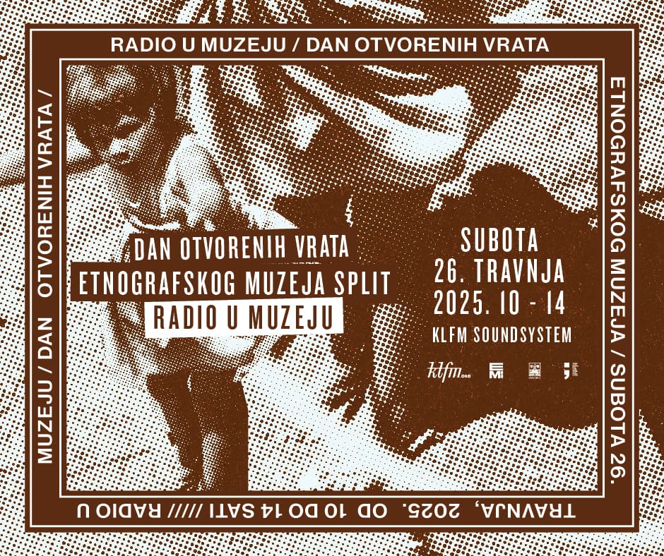 U subotu, 26. travnja, Etnografski muzej Split otvara svoja vrata svim posjetiteljima u sklopu manifestacije "Dan otvorenih vrata" uz poseban glazbeni program KLFM radija. Događaj traje od 10:00 do 14:00 sati, a svim zainteresiranima nudi besplatan ulaz, zanimljive radionice te stručno vodstvo kroz aktualnu izložbu.