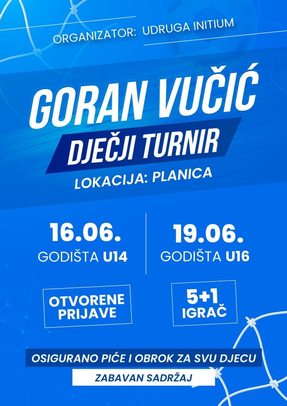U sklopu četvrtog izdanja Memorijalno-humanitarnog turnira “Goran Vučić”, ove godine po treći put održava se i Dječji malonogometni turnir “Goran Vučić”, koji će okupiti najmlađe zaljubljenike u nogomet u prekrasnom prirodnom ambijentu Planice u Gornjim Glavicama.