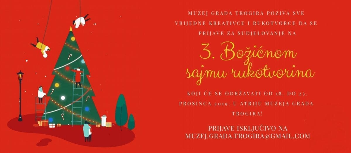 Tim povodom, organizatori pozivaju sve zainteresirane kreativce i rukotvorce da se prijave za sudjelovanje na Sajmu koji će se održavati od 18. do 23. prosinca u atriju Muzeja grada Trogira. Broj sudionika je ograničen, a prijaviti se možete putem e-adrese muzej.grada.trogira@gmail.com do 23:59 u nedjelju, 8. prosinca.