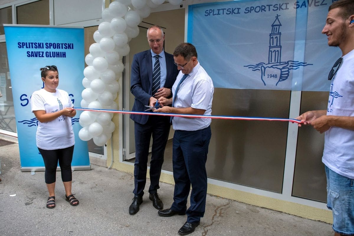 Simboličnim presijecanjem vrpce gradonačelnik Ivica Puljak i predsjednik Splitskog sportskog saveza gluhih Miro Opačak zajednički su otvorili uređene klupske prostorije na adresi Poljička cesta 17.