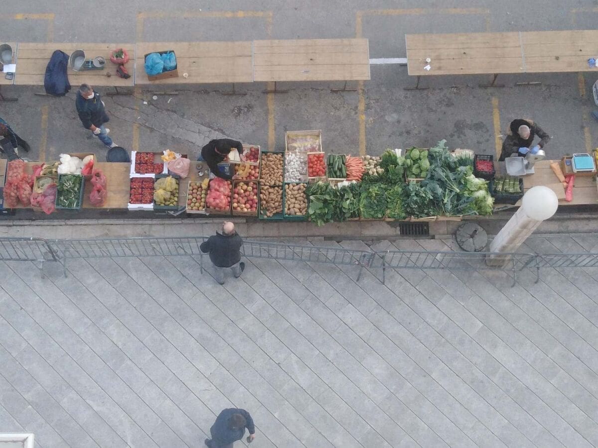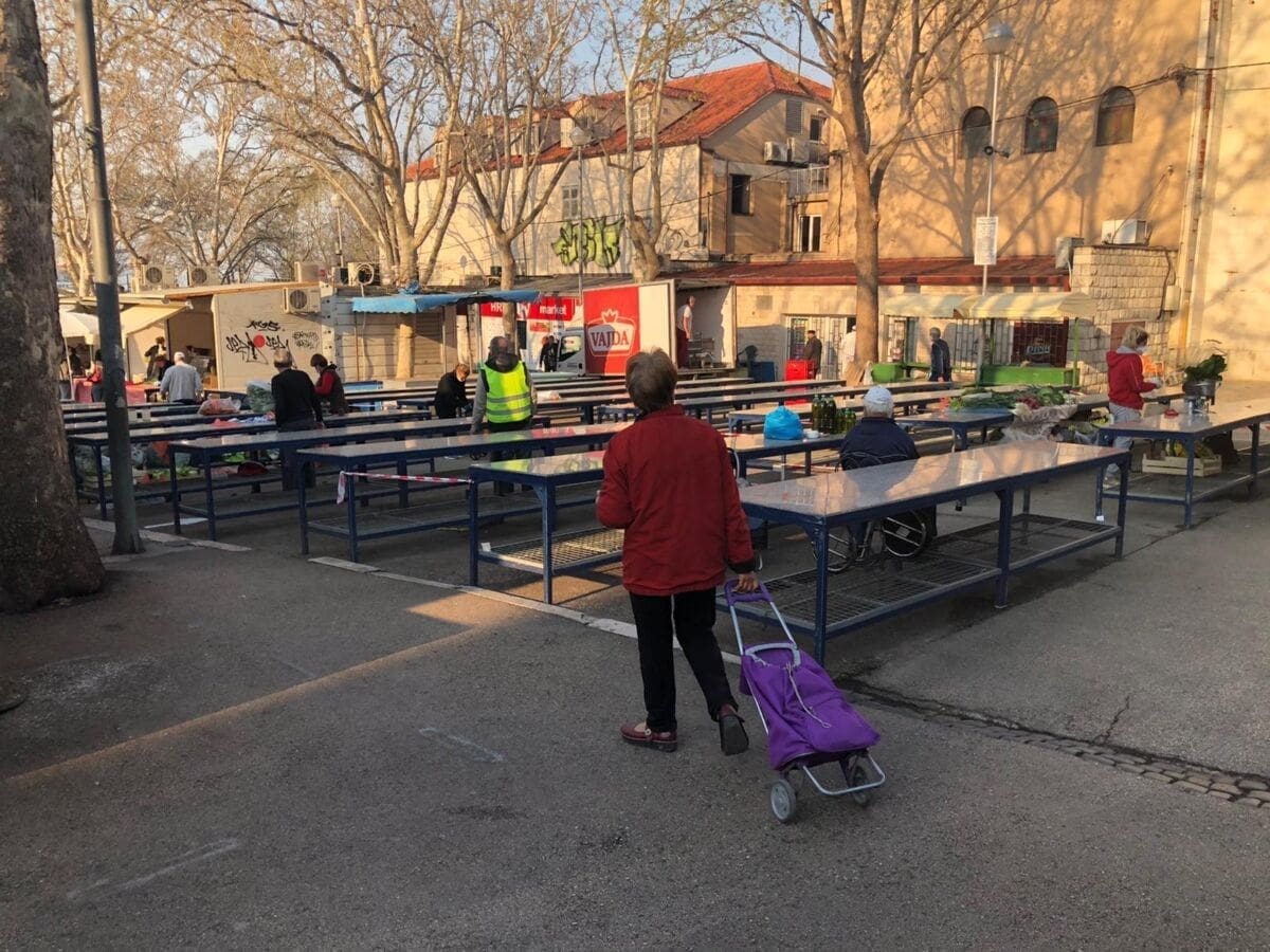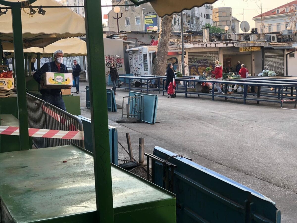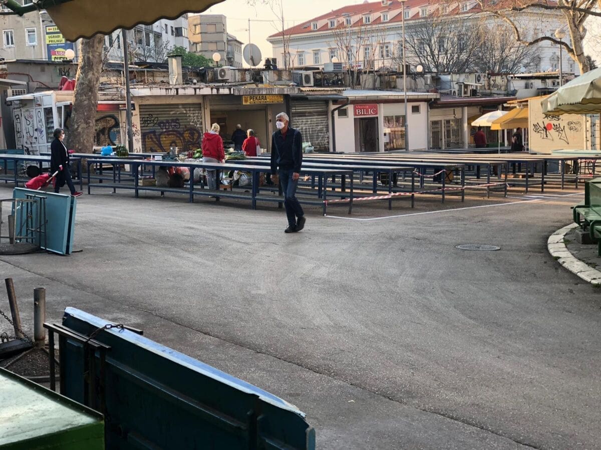 Jutros smo prošetali Pazarom na kojega se "život" postupno vraća. U 8 sati još nije bilo gužve, na pojedinim štandovima je započela prodaja, na tlu se iscrtane linije sigurnog razmaka, a da bi se spriječila gužva postavljene su zaštitne trake.