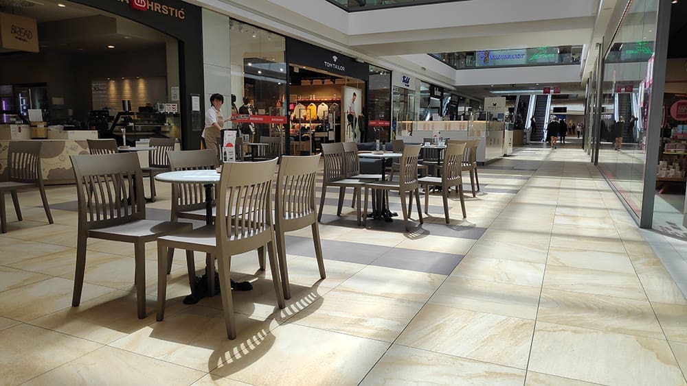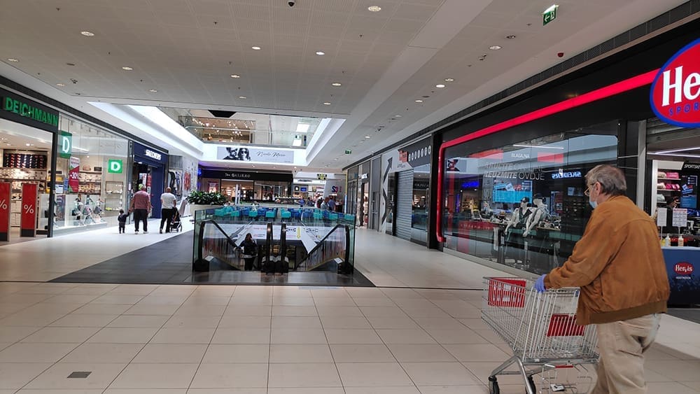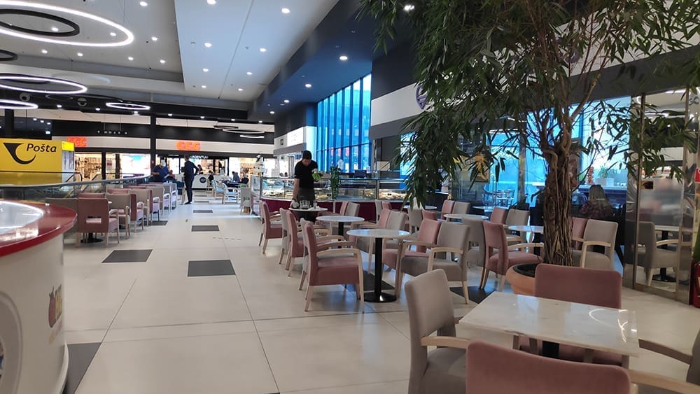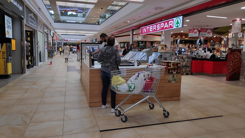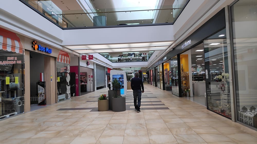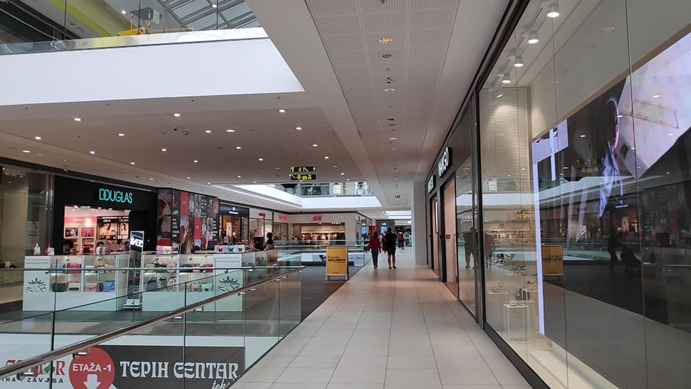 Osim Malla, posjetili smo i City One i Salona mall. U svim centrima ista priča, redovi pred bankama i poslovnicama teleoperatera, kino dvorane zatvorene, broj stolova u ugostiteljskim objektima prepolovljen, na ulazu u svaku trgovinu dezinfekcijsko sredstvo, a trgovci pod maskama.