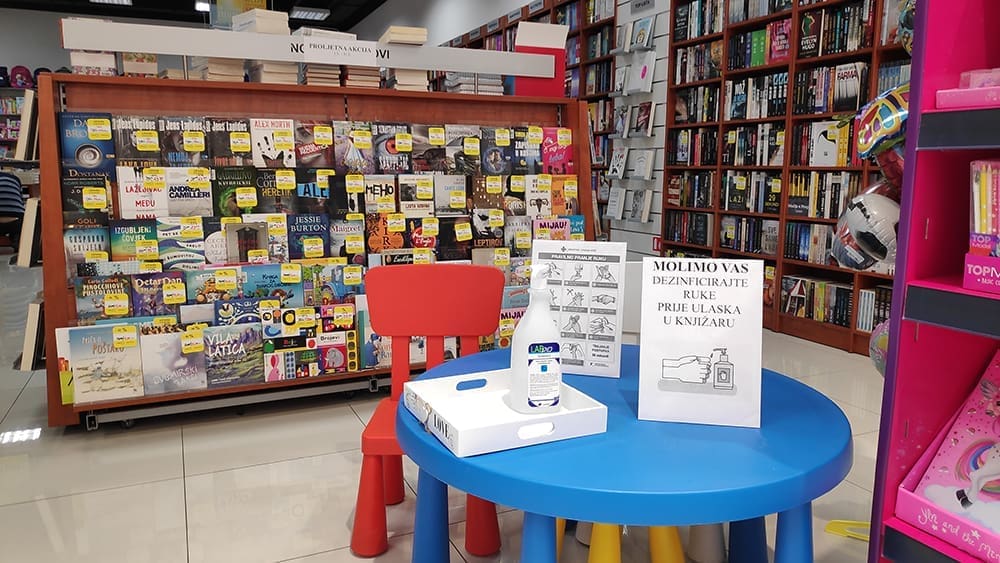 Sve kupce na ulazu čeka dezinfekcijsko sredstvo, pa listanje knjiga i dodirivanje drugih artikala ne bi trebao predstavljati problem.
