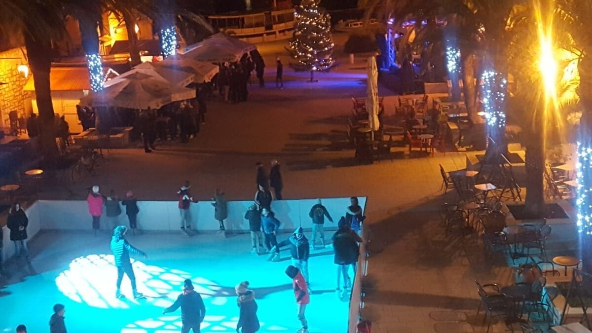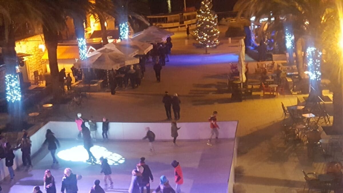 Tako je naš najsunčaniji otok proteklog vikenda dobio svoje prvo klizalište na otvorenom, na radost i oduševljenje svih, posebno najmlađih. Koliko nam je poznato, ovo je prvo otvoreno klizalište bilo gdje na jadranskim otocima. Klizalište je otvoreno ispred ribnjaka Petre Hektorovića u centru grada.