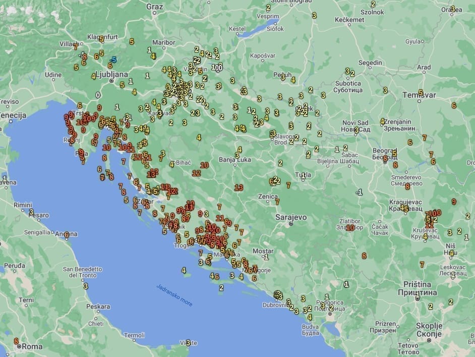 Nova sredozemna ciklona djeluje na vrijeme u cijeloj zemlji. Na Jadranu puše jako jugo s olujnim udarima, u Splitu je sredinom noći brzina vjetra bio na granici olujnog prosjeka.