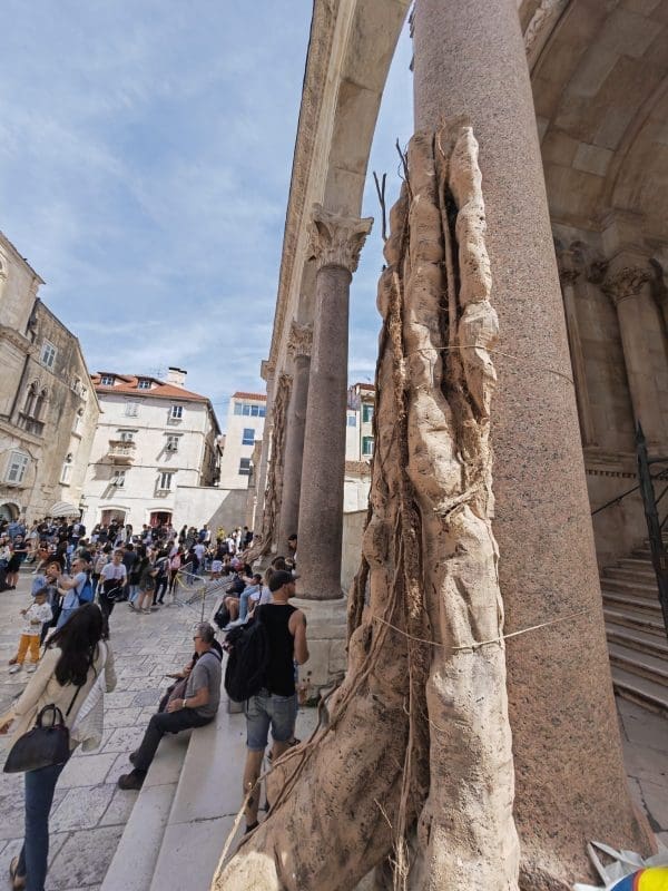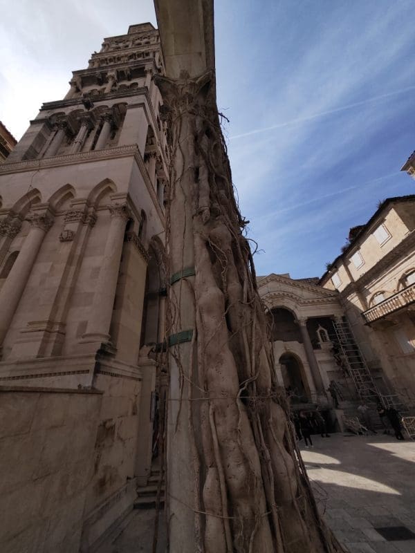 Ogromno deblo 'niknulo' je na splitskom Peristilu. Kako doznajemo, odmah kod splitske prvostolnice u tijeku je snimanje scena za jedan film.