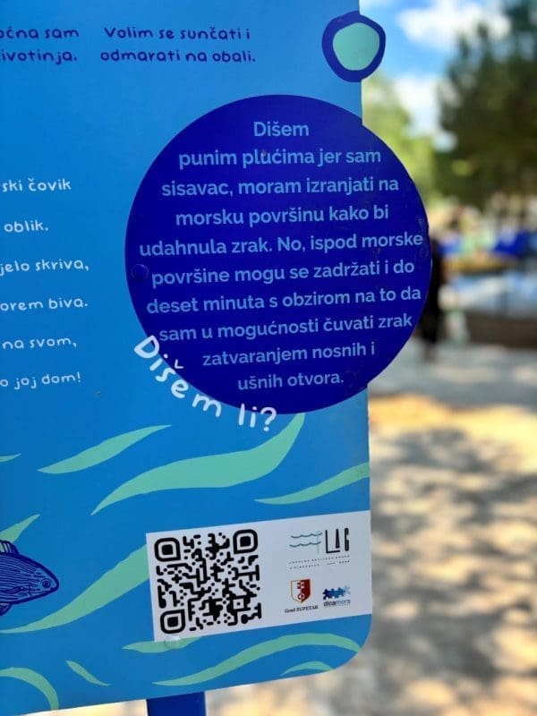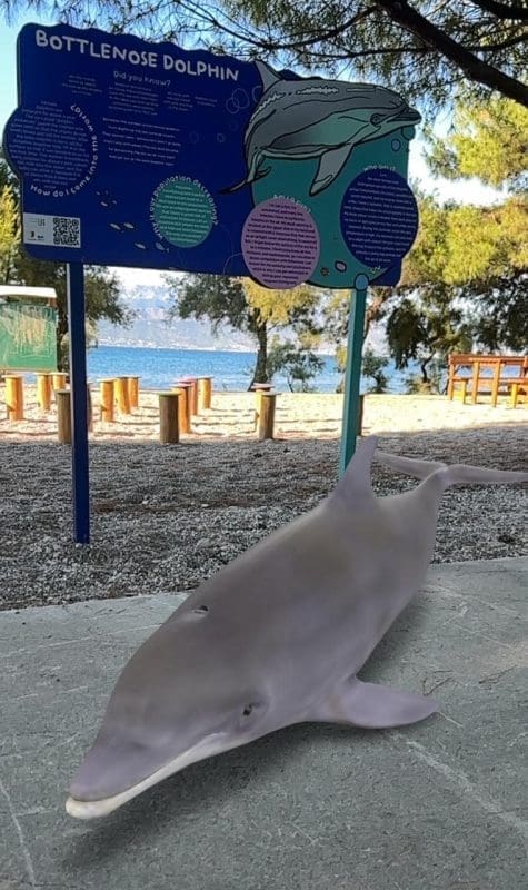"Zahvaljujući modernoj tehnologiji i QR kodu koji je sastavni dio svake edukativne table djeca će imati priliku doživjeti pojedine morske vrste u stvarnom vremenu i prostoru, te ako žele s njima se fotografirati. 3D animacije