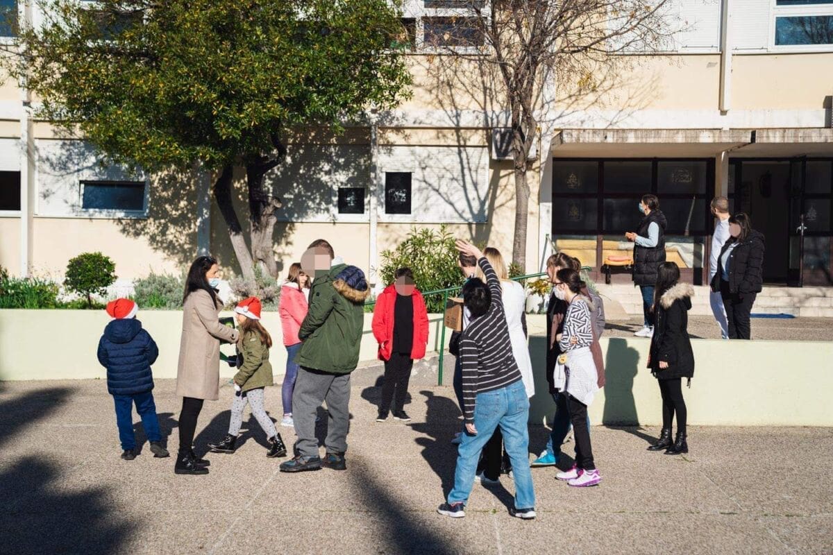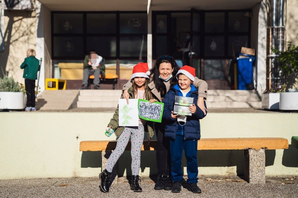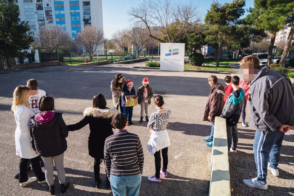 Topla srca učenika 3.b OŠ Dobri i korisnika iz Odjela smještaja COO Juraj Bonači sastala su se u dvorištu Centra na ovo sunčano prosinačko jutro.