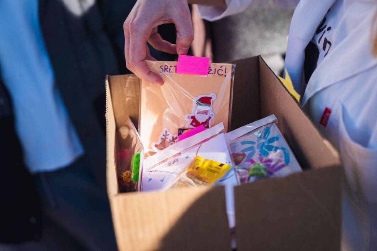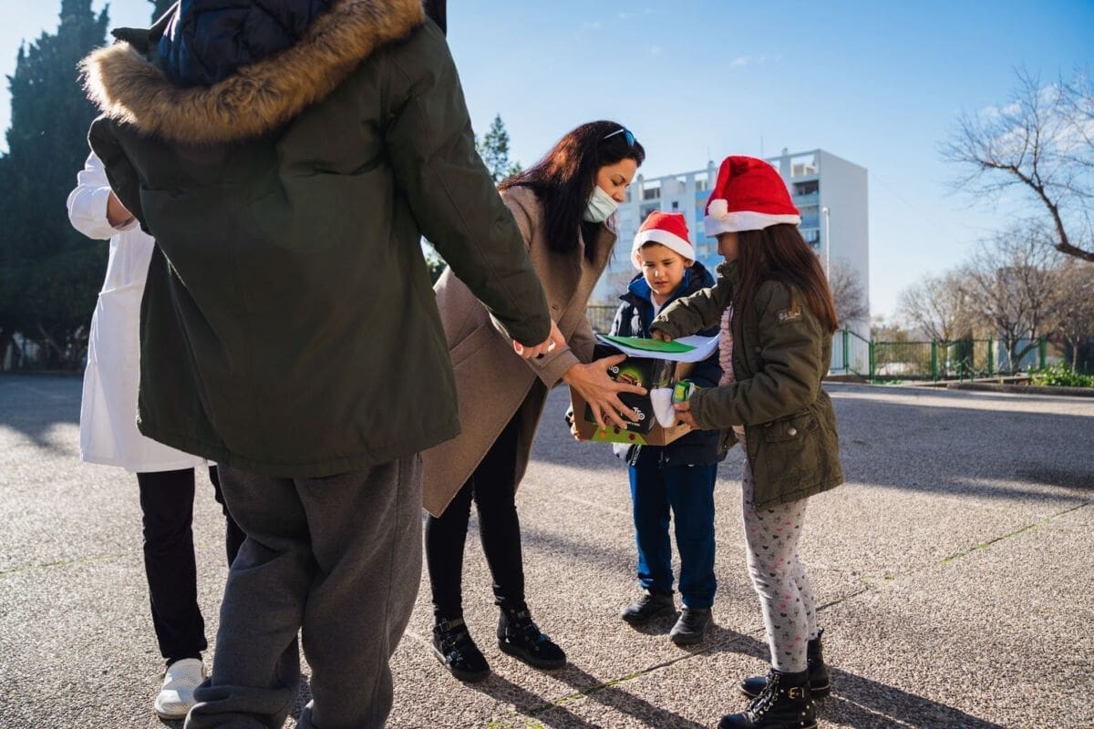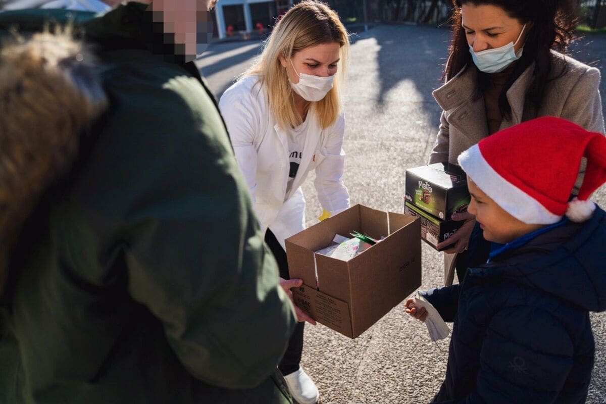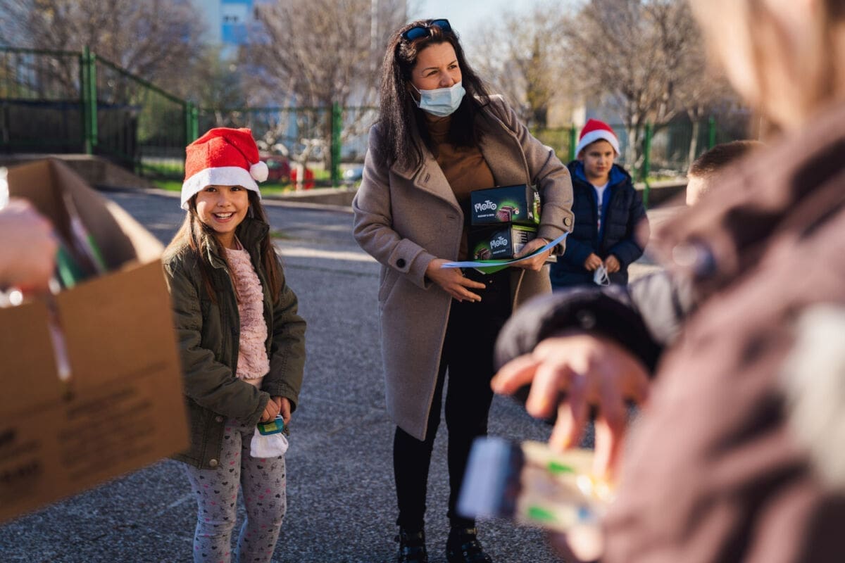 Topla srca učenika 3.b OŠ Dobri i korisnika iz Odjela smještaja COO Juraj Bonači sastala su se u dvorištu Centra na ovo sunčano prosinačko jutro.