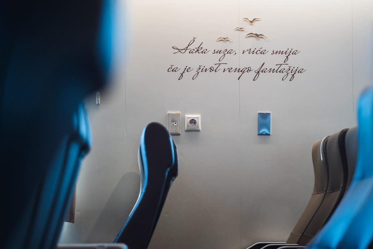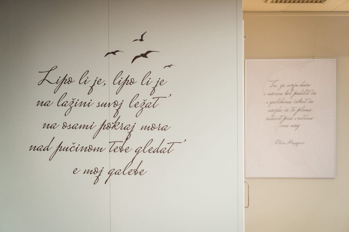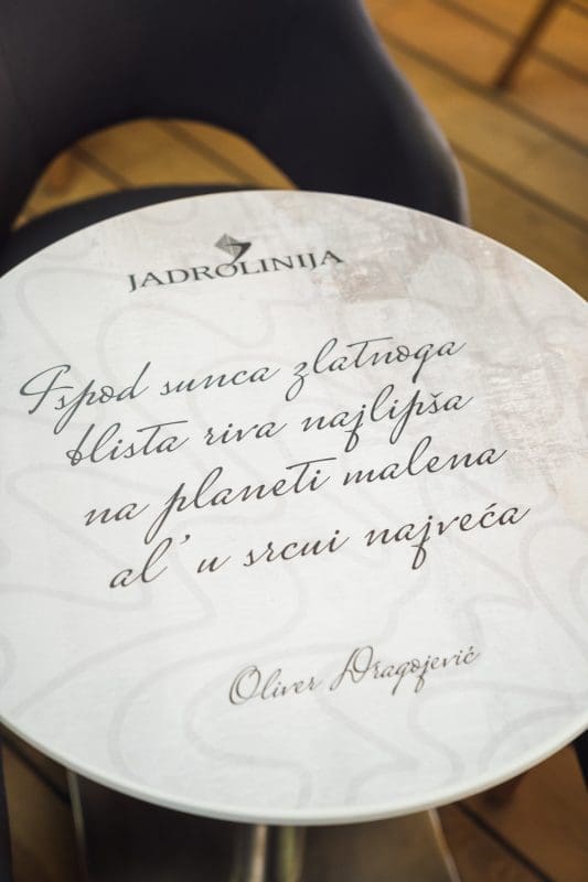 Oni koji su zaslužni za uređenje interijera trajekta potrudili su se odabrati stihove iz najljepših Oliverovih pjesama i rasporedili ih na zidove, stolove i pregrade na brodu.
