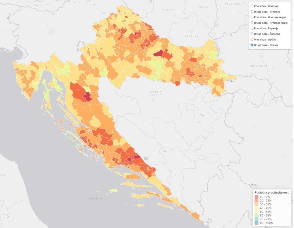 Hrvatska ima 50% cijepljenih barem jednom dozom, ali manje od 46% s dvije doze