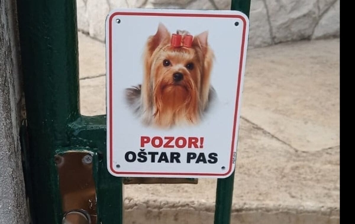 Mnoga dvorišta u Dalmaciji čuvaju "oštri" psi, no jedno dvorište čuva sasvim neobičan "oštar" pas. Naime, na ulaznim vratima jednog trogirskog dvorišta stoji dobro poznati natpis "Oštar pas", a na fotografiji iznad je preslatki jorkširski terijer.