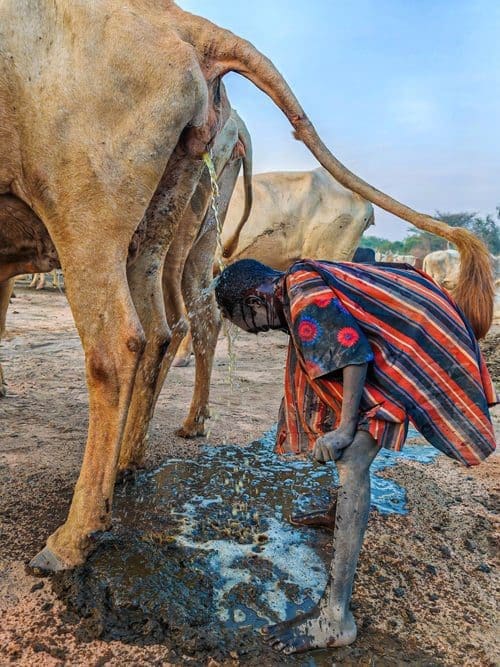 U kampu Mundarija sam ostao tri dana i snimio brojne aktivnosti karakteristične samo za taj narod. Neke od njih su i bizarne. Poput „tuširanja“ kravljom mokraćom. No ne radi se o nedostatku tekuće vode. Obala moćne i čiste rijeke Bijelog Nila nalazi se niti 200 metara dalje od stočnog kampa. Postavlja se logično pitanje zašto oni to rade? Zbog komaraca. Malaričnih komaraca koji su najveći neprijatelj Mundarija. Navodno kravlja mokraća odvraća komarce, a premazana pepelom stvara neprobojan štit na koži. Većinu tih običaja i poslova vezanih uz stoku ponavljaju svaki dan već stoljećima. Bez ikakve promjene. Nakon odlaska stoke na ispašu, prva jutarnja obaveza je sakupljanje izmeta koje odnose na centralno mjesto da ga sunce osuši. Navečer je ta balega druga linija odbrane od komaraca. Raspoređena na stotine hrpica i zapaljena, tinja cijelu noć i gustim dimom uspješno tjera komarce. Kao i ljude od mene u avionu. Bez obzira na to što sam se nekoliko puta tuširao i oprao svu opremu. No vratimo se mi na Mundarije. U redovnu obavezu spada i mužnja krava, a posebno je zanimljivo vidjeti kada se neki žedni dječak napije mlijeka direktno iz vimena krave ili koze.
