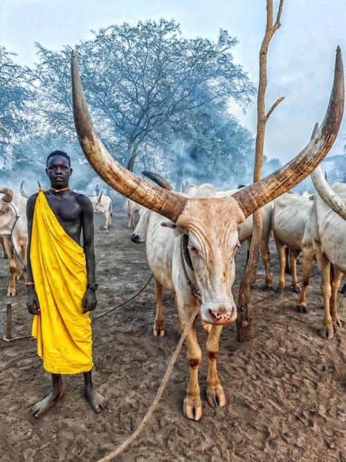 Rijetko koji narod na svijetu je vezan uz svoju stoku kao Mundari. Toliko su opsjednuti s njima da znaju na svoja čela urezati po dva niza od tri paralelne linije, što simbolizira rogove goveda. Oni su vlasnici desetaka tisuća (u ovom kampu oko 700!) goveda vrste ankole vatusi koja je poznata po iznimno velikim rogovima. Stoka je ovom narodu sve. Za nju su spremni i poginuti. Ona im je hrana, oblik valute i statusni simbol. Svaki dan ih čiste, zaprašuju pepelom protiv nametnika i ukrašavaju njihove rogove crvenom glinom. Čuva ih nekoliko desetaka naoružanih muškaraca. Nije ni čudo s obzirom na to da svaka vrijedi oko 500 američkih dolara. Ujutro oko 9 kreću na ispašu, a u kamp se vraćaju pred zalazak sunca. Tada Mundari pale izmet koji se tijekom dana osušio, što u kombinaciji sa svjetlom zalaska sunca i stoke koja prolazi kroz tu dimnu zavjesu stvara magičnu fotografsku kulisu. Tako je i nastala jedna od mojih najboljih fotografija.
