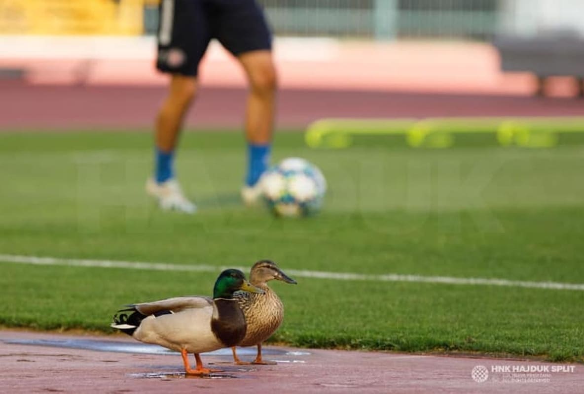 Naime, trening su "promatrale" dvije patke koje su sletjele na Hajdukov stadion.