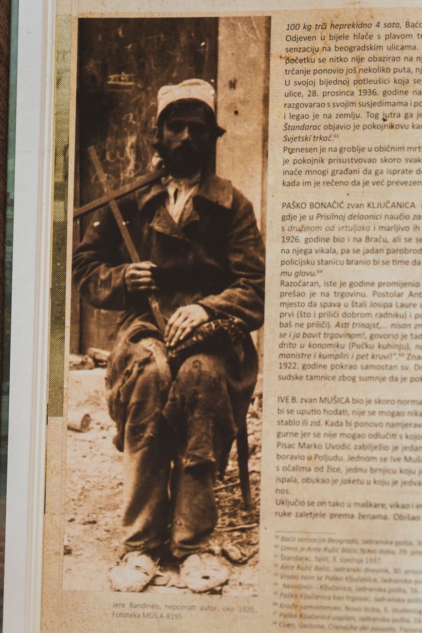Povjesničar umjetnosti i muzejski savjetnik Goran Borčić autor je knjige Povijest pisana svjetlom, Split od Prisce do Adriane u čijem prvom dijelu do u tančine raščlanuje splitske osobenjake među kojima su razni redikuli, imbrojuni, manjamuktaši, manjinjorgi, bonkulovići, poverini, barufanti, maškalcuni, mucigoti, uncuti, berekini, farabuti, furbačuni, batali, bevaduri, dišperaduni, šotokucini, foliranti, zavajuni, trunfuni, vagabondi i mnogi drugi koji su se isticali svojim osobenostima. Među njima Baću, Maru Žebon, Duju Balavca, Stipu Igru, Giovaninu Kokolo, Pajdu, Periku, Jozu Trinaesticu i brojne druge. Ovo je priča o njima.