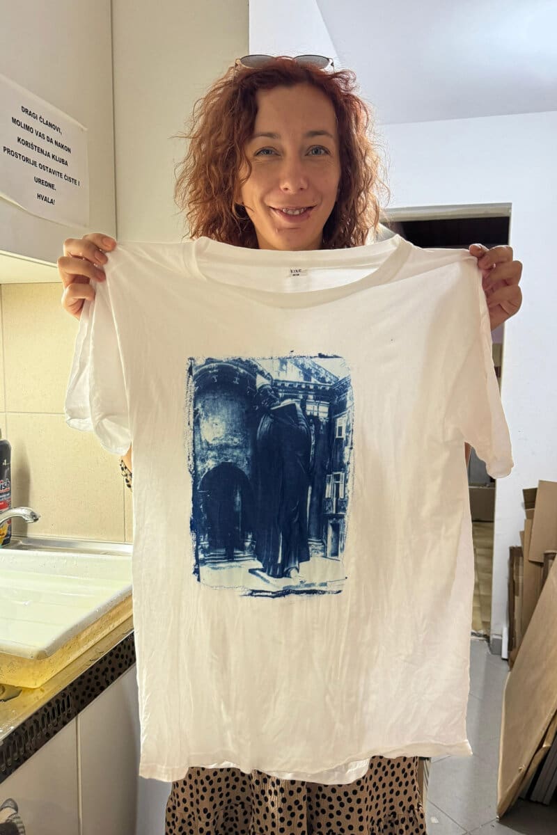 Radionica cijanotipije održana je pod stručnim vodstvom fotografkinje Anđele Vidić. Starom fotografskom tehnikom cijanotipije polaznici i polaznice su izrađivali vlastite majice za uspomenu s motivima razglednica i poznatih fotografija članova Fotokluba Split.