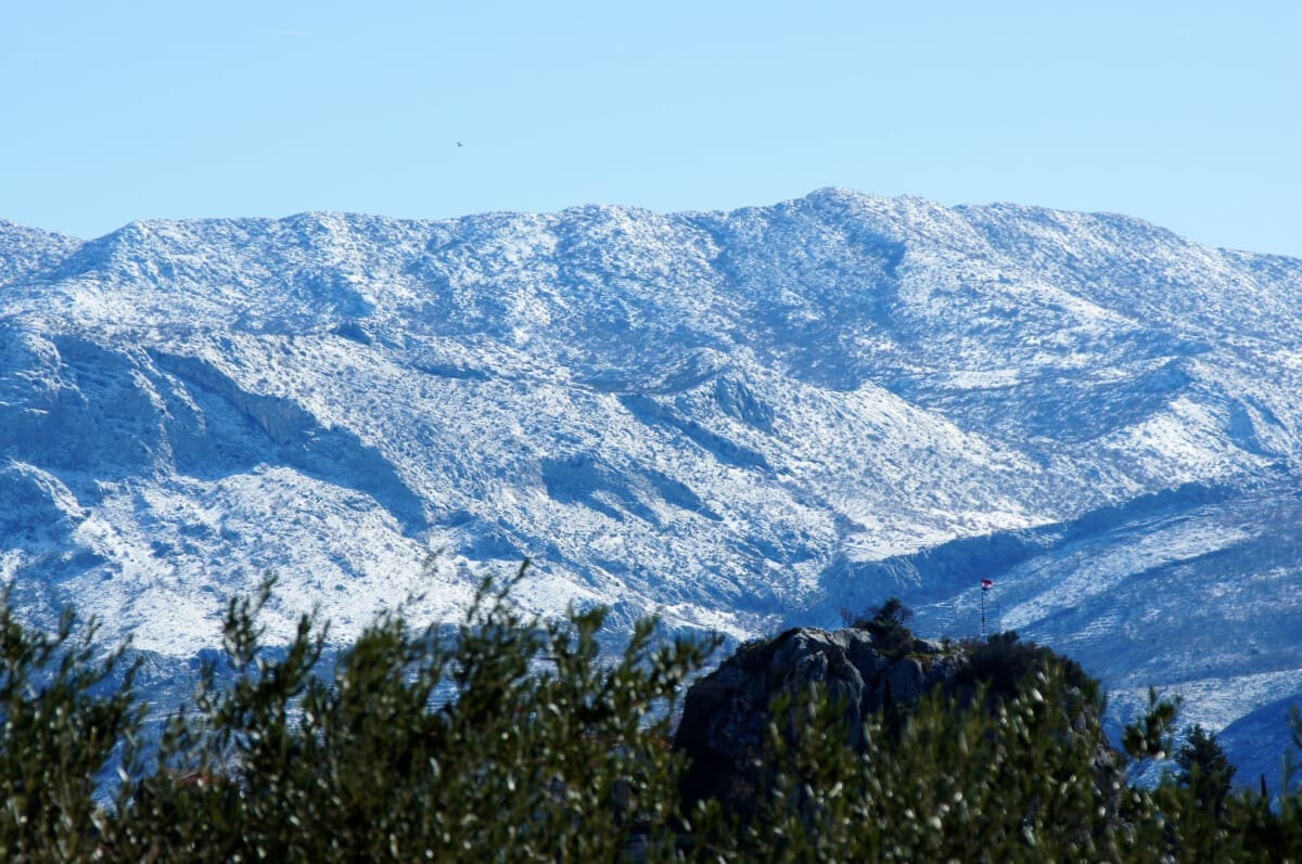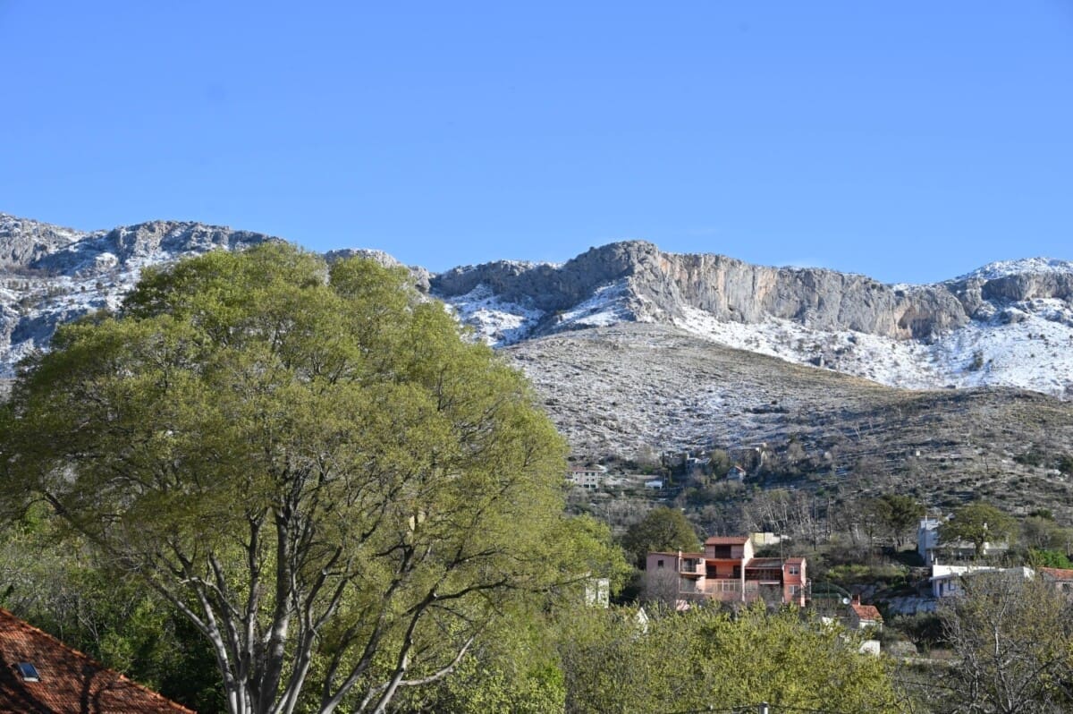 Jučer su Mosor, Kozjak i druge planine osvanule bijele gotovo do podnožja, a zanimljivo, usprkos jakom travanjskom suncu, dio snježnog pokrivača zadržao se cijelu dan.