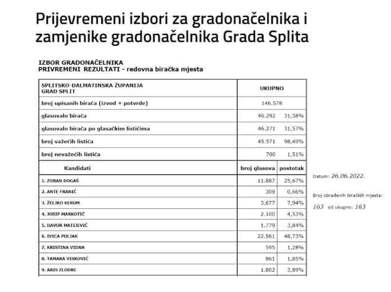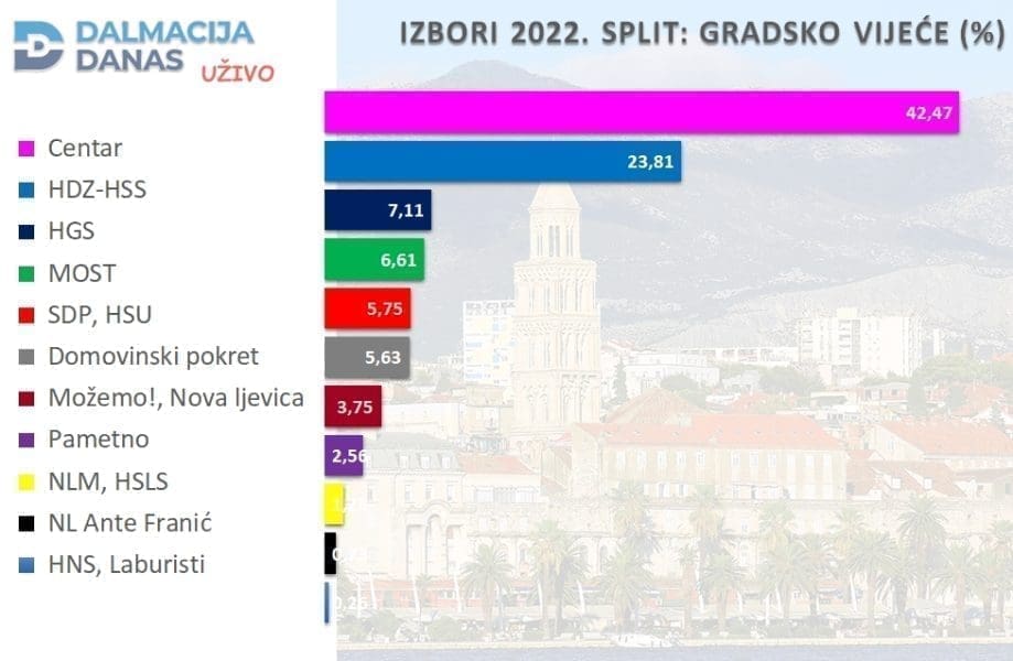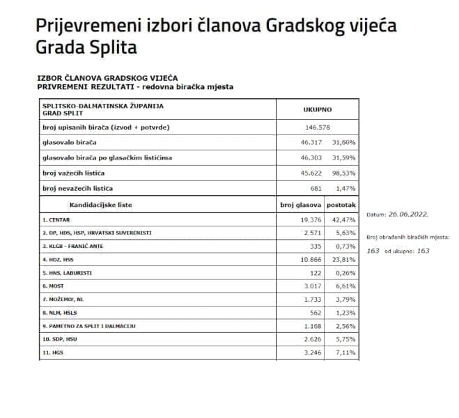 U 22:30 obrađena su sva biračka mjesta u Splitu.
